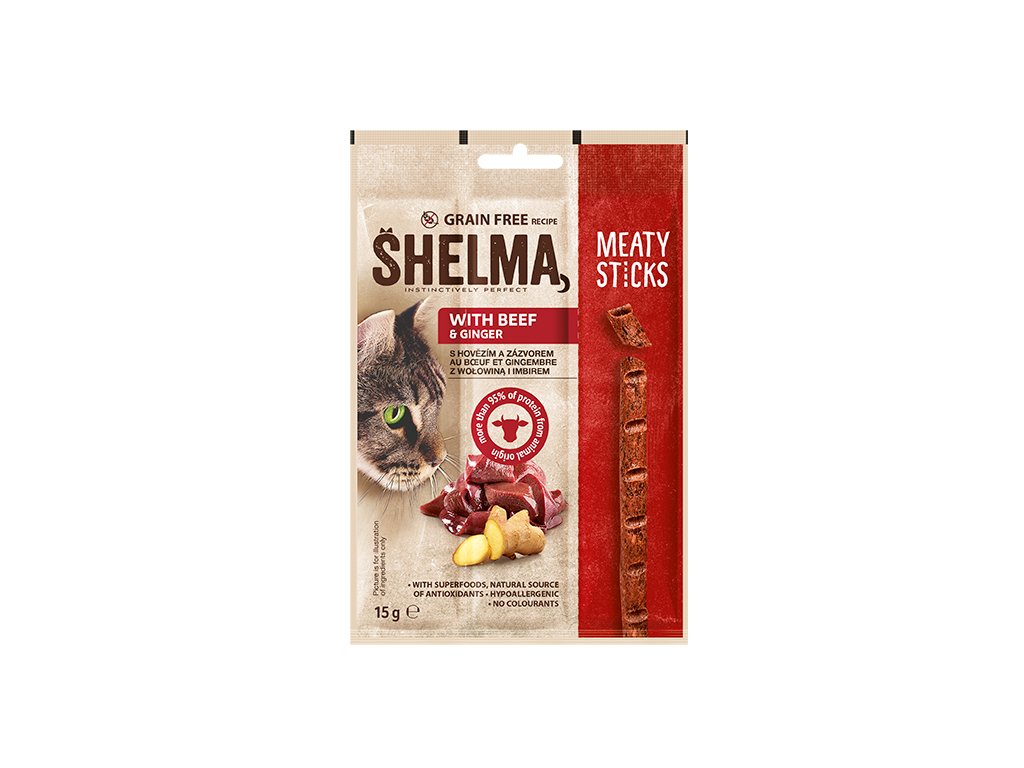 Shelma masové tyčinky s hovězím a zázvorem pro kočky 15 g