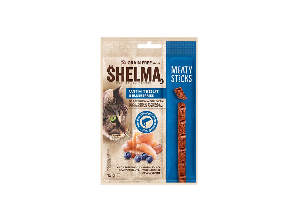 Shelma masové tyčinky se pstruhem a borůvkami pro kočky 15 g