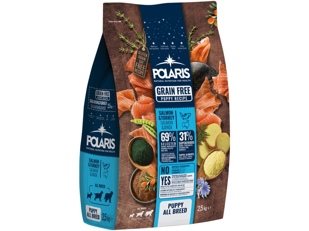 POLARIS jsou superprémiové receptury granulí pro psy, bez obilovin, s čerstvým masem a mnoha blahodárnými přírodními ingrediencemi pro podporu zdraví a vitality vašich mazlíčků. ActiveMOS (zdroj mannan-oligosacharidů), kořen čekanky (zdroj inulinu) a vláknina z psyllia, fungují jako prebiotika a pomáhají tak podporovat zdravé trávení a vyváženou střevní mikroflóru. Pro posílení imunitního systému je v granulích obsažen Macrogard (zdroj beta glukanů) spolu s přírodními zdroji antioxidantů jako spirulina, rakytník a bylinky (rozmarýn, tymián a petržel). Zdravou kůži a lesklou srst podporují omega nenasycené mastné kyseliny, které v optimálním poměru podporují zachování přirozené struktury a funkce kůže. Chondroitin a glukosamin pomáhají udržovat zdravé a flexibilní klouby a chrupavky. Taurin přispívá k dobrému zraku a k silnému a zdravému srdci.