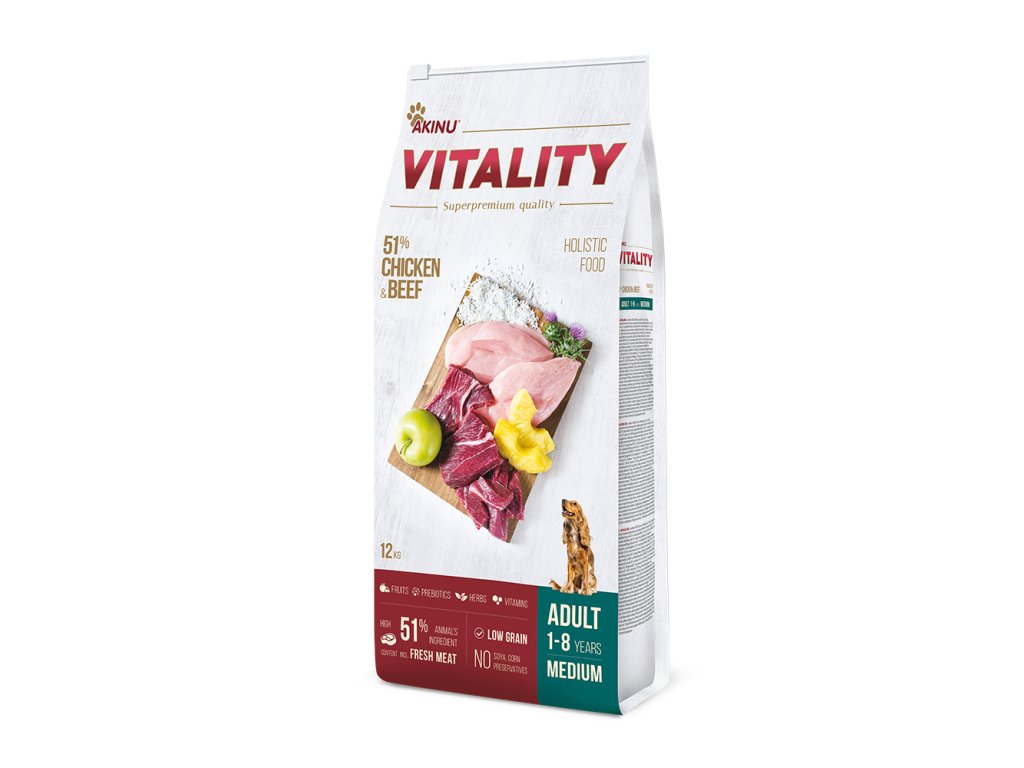 Holistické superprémiové krmivo s vysokým podílem čerstvého masa: Akinu VITALITY dog adult medium chicken & beef