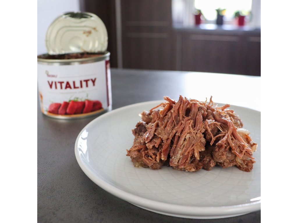 Krájené hovězí maso Akinu VITALITY neobsahuje konzervanty, barviva, sóju ani dochucovadla. Konzerva okamžitě připravena k servírování a její obsah splňuje i ty nejnáročnější nároky na kvalitu.