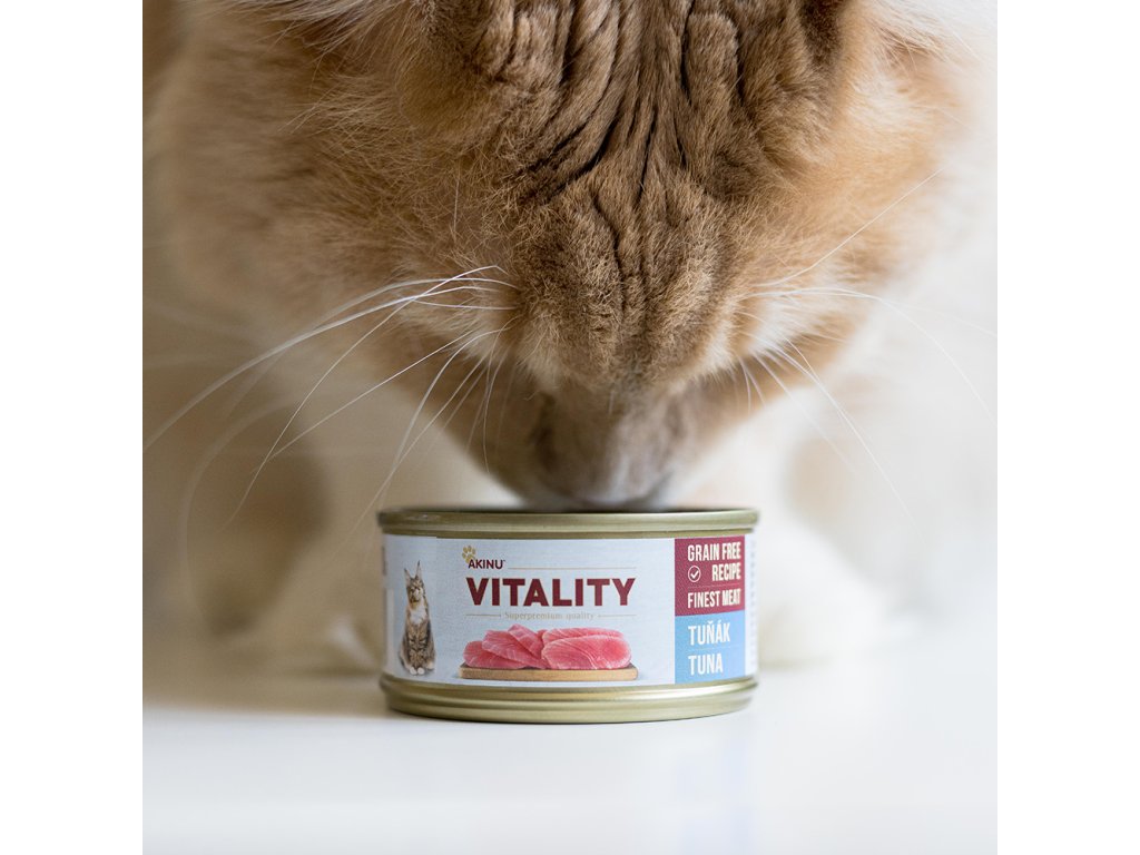 Po náročném dni si vaše kočička zaslouží chutnou, zdravou a voňavou večeři. Ať už trávila den odpočinkem nebo dováděním, určitě jí chcete dopřát jen to nejlepší. Vsaďte na konzervu, která bude neodolatelně vonět i chutnat a nebude obsahovat zbytečné konzervanty ani dochucovadla. Vyzkoušejte tuňákovou konzervu Akinu VITALITY.