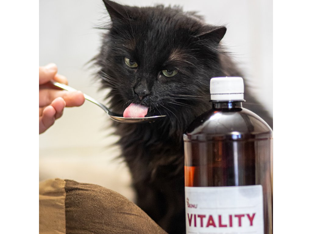 VITALITY LOSOSOVÝ OLEJ je extra čistý, za studena lisovaný a bezvodý. Netuhne v chladu (až do - 10 ⁰C) a neobsahuje příměsi jiných druhů olejů. Má vynikající účinek na kvalitu a lesk srsti a zlepšuje fungování metabolismu. Je přirozeným zdrojem energie a také jedinečným zdrojem nenasycených mastných kyselin Omega 3, DHA (kyselina dokosahexaenová) a EPA (kyselina eikosapentaenová). Je vhodný jako přísada a ochucovadlo pro zalití těstovin, nízkotučných granulí, libového masa či zeleniny. 100 g lososového oleje představuje 3,4 MJ = 812,6 kcal. (Pro srovnání: 100 g hovězího masa představuje 0,49 MJ = 117,1 kcal)