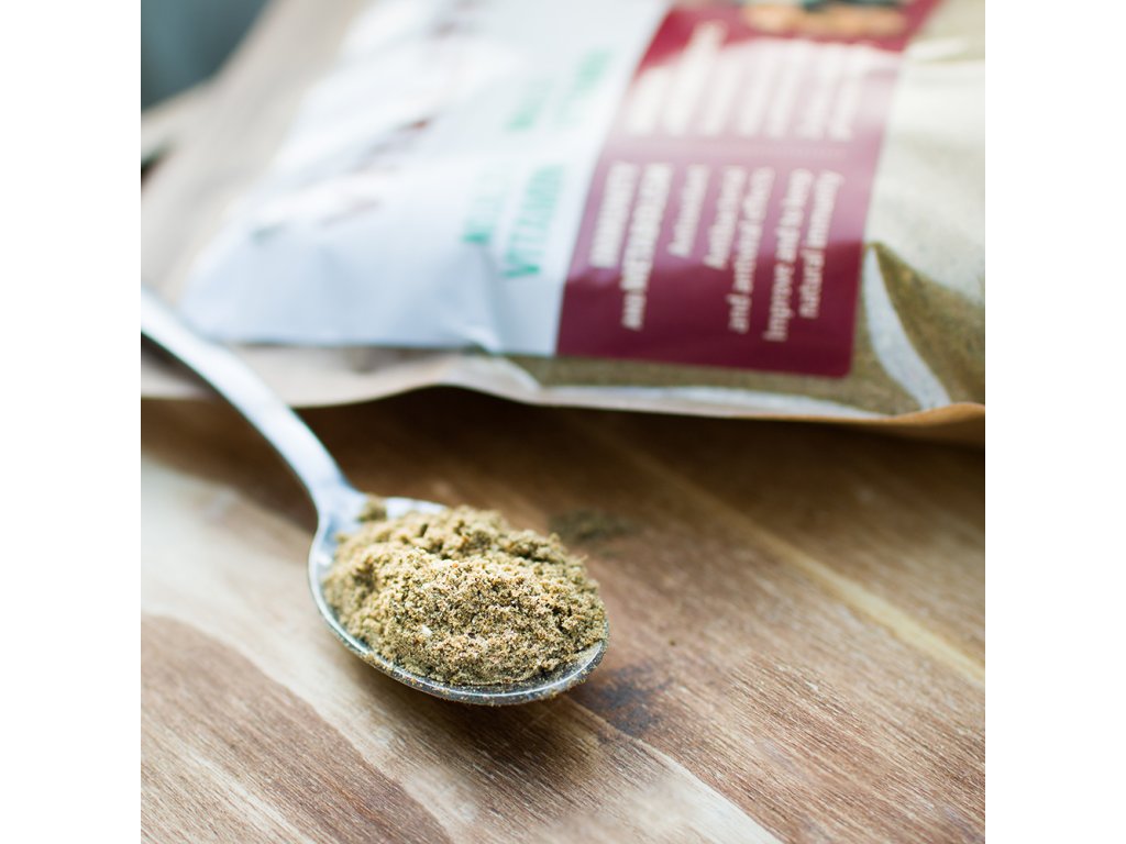 Sypká multivitamínová směs je složena z tzv. superpotravin (vodních řas, krillu, pivovarských kvasnic, aj. složek bohatých na proteiny, vitamíny, minerální látky, stopové prvky, antioxidanty či nenasycené mastné kyseliny) a byla sestavena speciálně pro psy. Všechny složky tohoto doplňku stravy pro psy jsou výhradně přírodního původu, díky čemuž je zajištěna vysoká stravitelnost a hlavně využitelnost v organismu psa.