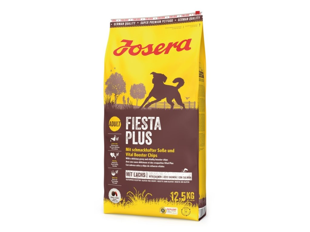 Pokud váš pes miluje Joseru Festival, bude mu chutnat i nová verze - Josera Fiesta Plus, která obsahuje obohacené složení s Vital Chips (obsahuje vitamín C a E k ochraně buněk před volnými radikály, stejně jako taurin a L-karmitin, které podporují srdce našeho mazlíčka).Je to pestrá směs pro vybíravé psy s přidanými vitamíny - mix barevných kroket s chutným drůbežím masem a lososem. Vhodné pro normálně aktivní, vybíravé psy. S lahodnou omáčkou v prášku pro extra chuť. Výhodné mastné kyseliny podporují zdravou kůži a lesklou srst.