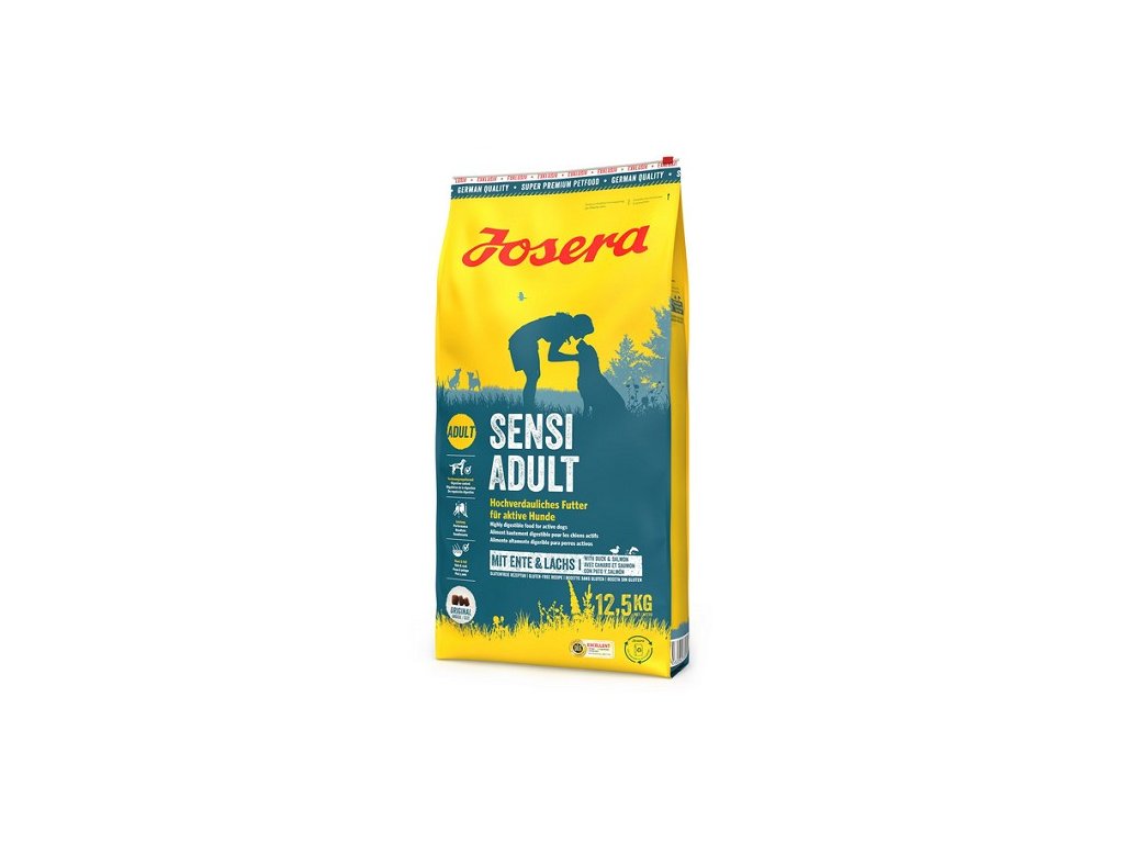 I citliví sportovci potřebují dokonalé jídlo: naší odpovědí je Josera Sensi Adult! Bohatá a trávení regulující receptura poskytuje dostatek energie pro vyšší úroveň aktivity a reguluje množství trusu. Josera Sensi Adult obsahuje stejné vysoce kvalitní zdroje bílkovin jako naše krmivo pro odchov Josera Sensi Junior - je tedy ideální jako následné krmivo pro hladký přechod po dosažení dospělosti vašeho psa. Je to super kvalitní krmivo pro naše citlivé sportovce. Cenné antioxidanty mohou minimalizovat škodlivý účinek volných radikálů, které se ve zvýšené míře tvoří při fyzické aktivitě. L-karnitin podporuje metabolismus tuků a pomáhá dodávat energii. Lesklá srst a zdravá kůže jsou známkou optimální výživy vašeho psa. To zajišťují cenné mastné kyseliny, vitamíny, zinek a měď ve snadno vstřebatelné, organicky vázané formě.