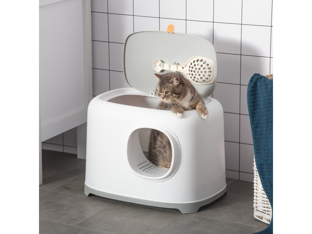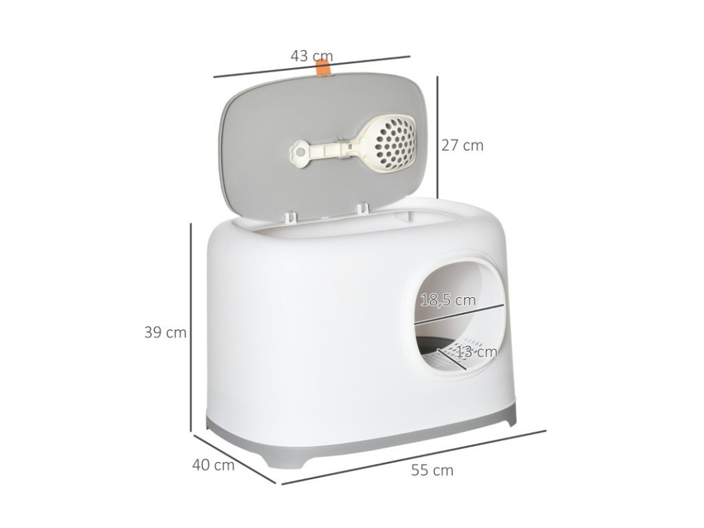 Tato kočičí toaleta od PawHut nabízí vaší kočce chráněný prostor pro nerušenou práci, takže se cítí obzvlášť pohodlně. Toaleta se skládá z robustního krytu vybaveného tunelovým vchodem se síťovaným dnem, který uvolňuje kočičí stelivo z tlapek vaší kočky a udržuje vaše pokoje čisté. Odklápěcí víko, odnímatelná spodní miska a přiložená naběračka usnadňují čištění. Jednoduché, nadčasové barevné provedení se skvěle hodí do každého interiéru.