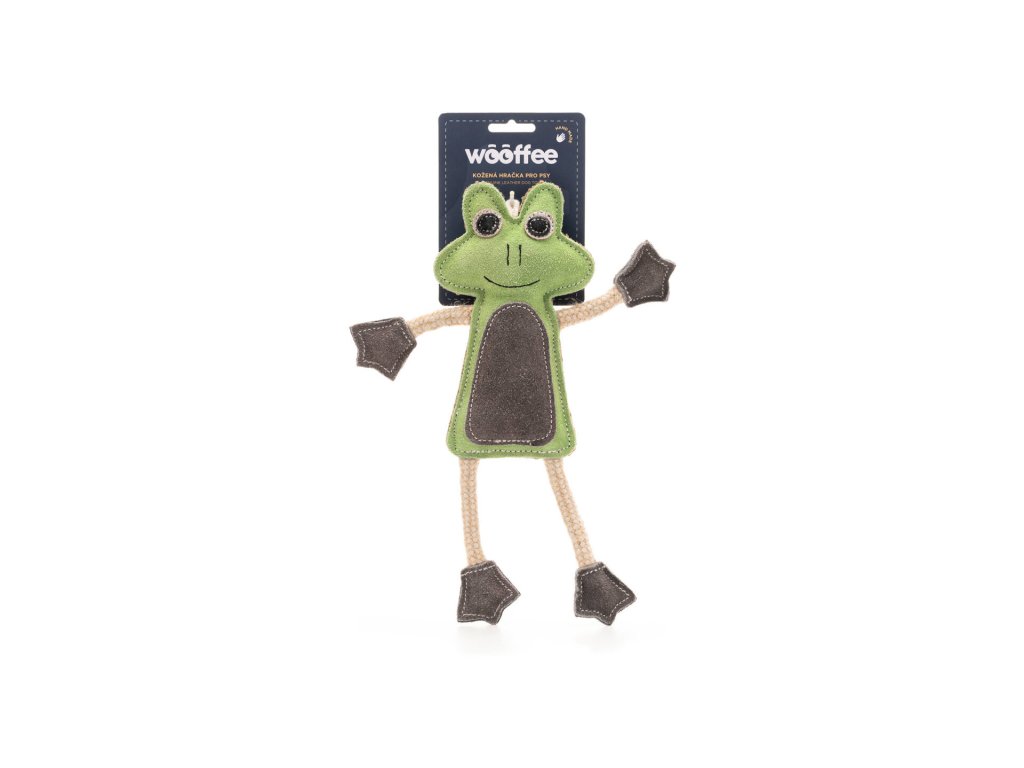 Wooffee kožená hračka Žabka s provazy je ručně šitá hračka z přírodních materiálů, která spojuje odolnost, bezpečnost a instinktivní zábavu. Tělo žabky je vyrobeno z pravé buvolí kůže s výplní z kokosových vláken, zatímco končetiny tvoří jutový provaz s bavlnou – ideální pro žvýkání, přetahování i aportování. Přirozená vůně kůže připomíná pach kořisti, což psa motivuje ke hře a naplňuje jeho přirozenou potřebu lovit a kousat.