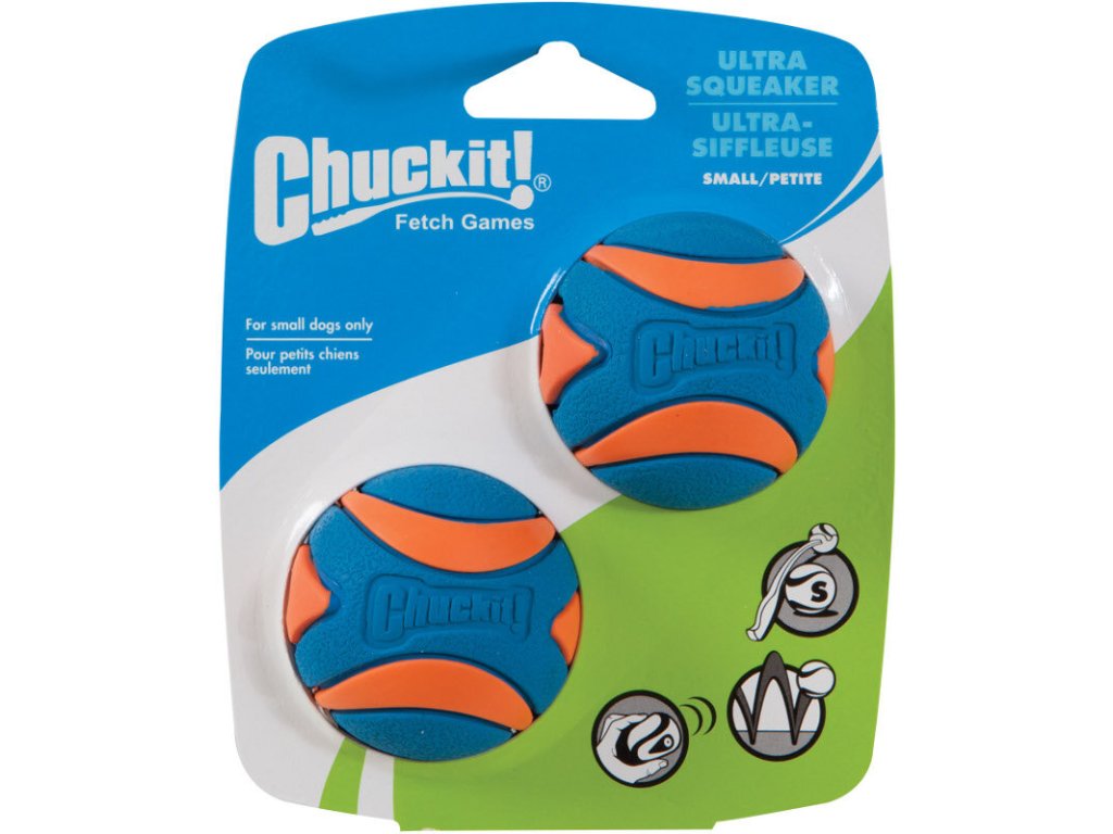 Míček Ultra Squeaker Ball Small 5 cm – 2 na kartě od značky Chuckit! je ideální aportovací hračka pro malé psy, kteří milují zvukové podněty. Díky pískátku, vysoké pružnosti a odolnosti se stává nepostradatelným společníkem při každé venkovní hře. Navržen tak, aby perfektně pasoval do házečů Chuckit! Small.