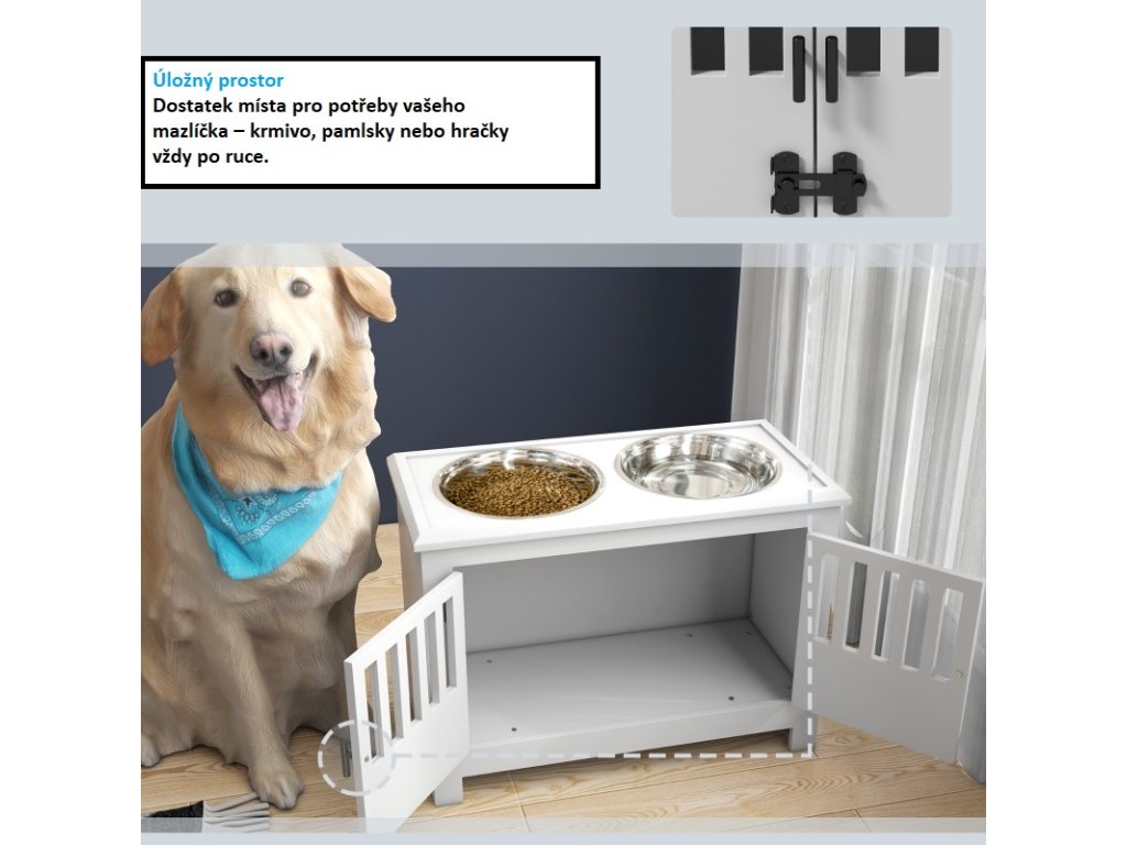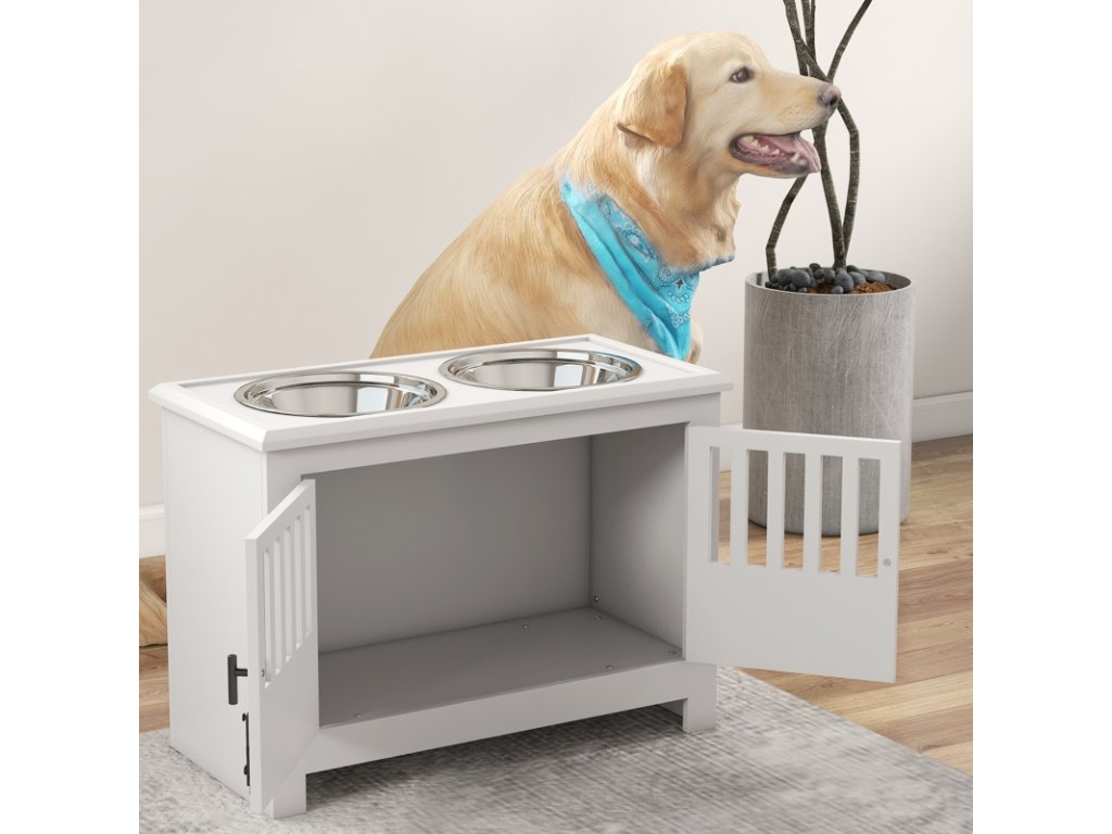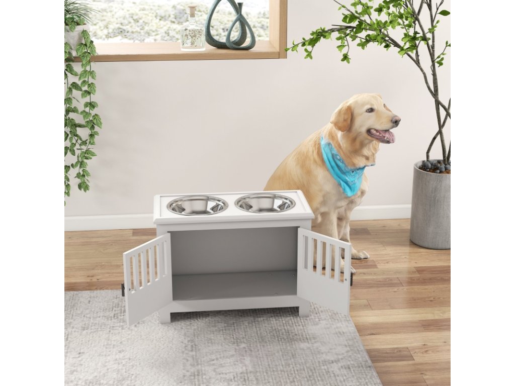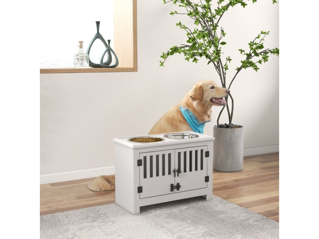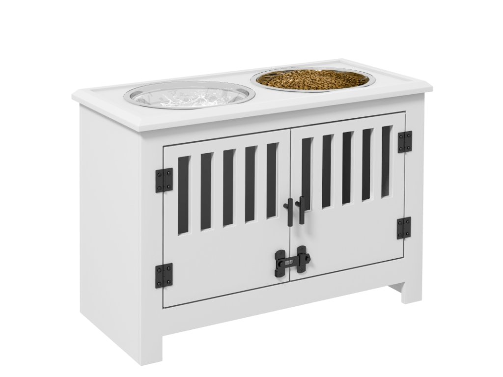 Miska na krmení pro psy se skříňkou, bílá