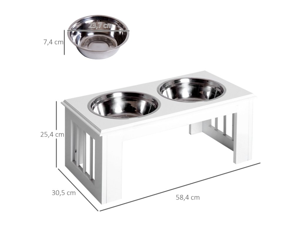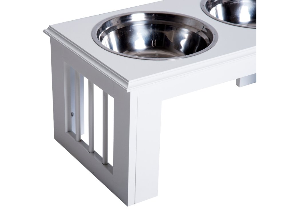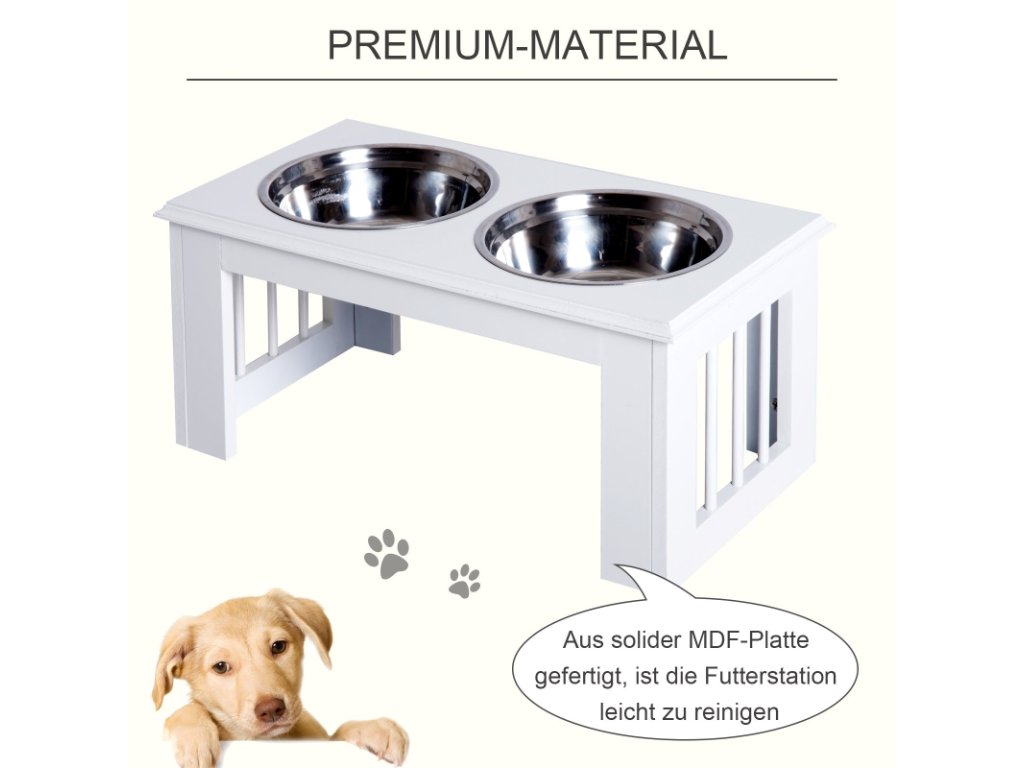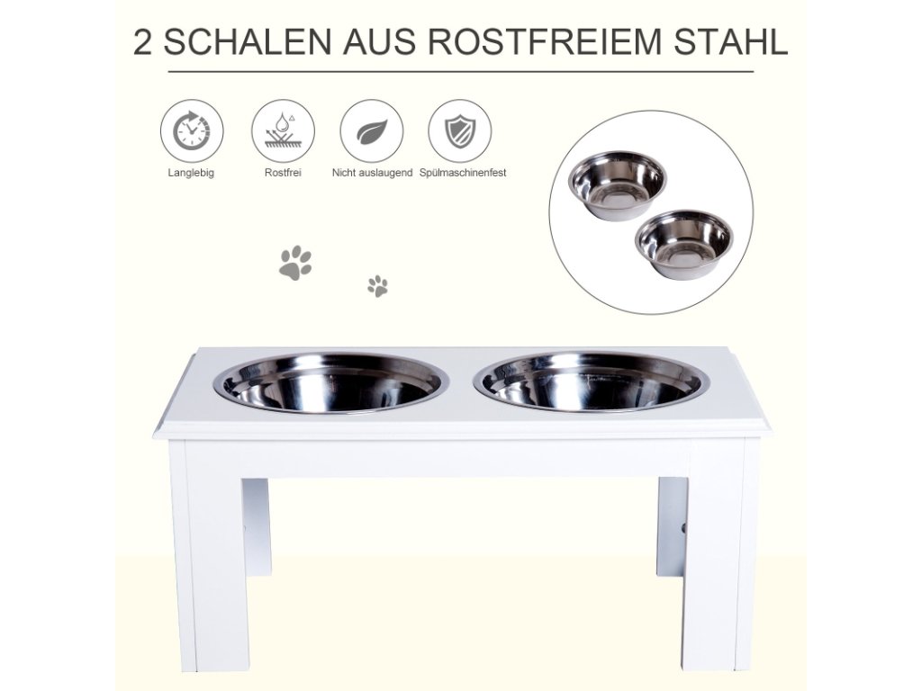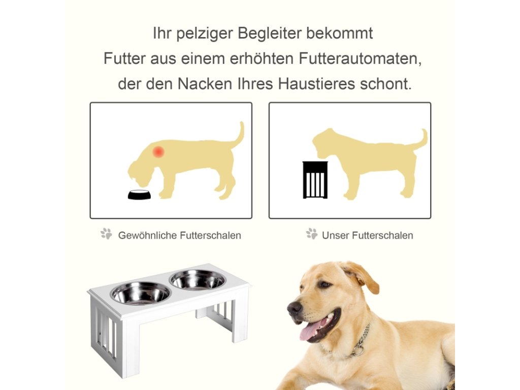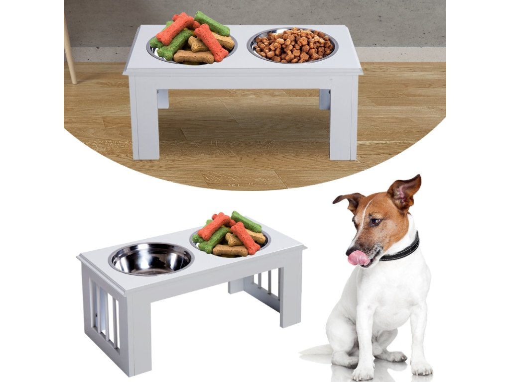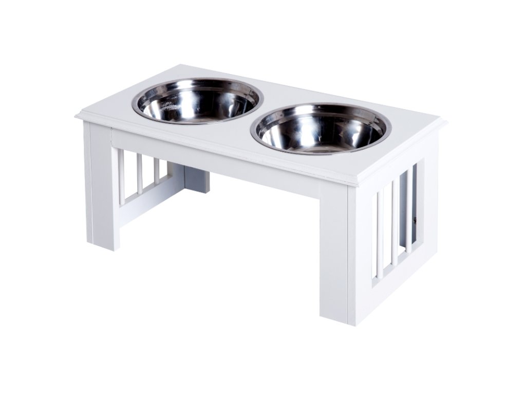 S touto miskou na jídlo můžete svým mazlíčkům usnadnit čas jídla. Konstrukce je z MDF desek navržená pro dlouholeté používání a dvě kulaté misky jsou z nerezové oceli. Obě misky jsou robustní, odolné a snadno se čistí. Jsou hygienické a bezpečné pro vaše domácí mazlíčky. Zvýšené dno pomáhá, aby bylo jídlo pro vaše domácí mazlíčky čistší a snazší. Misky na krmivo jsou nezbytnou výbavou každé domácnosti se psem, kočkou apod.