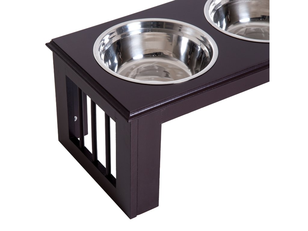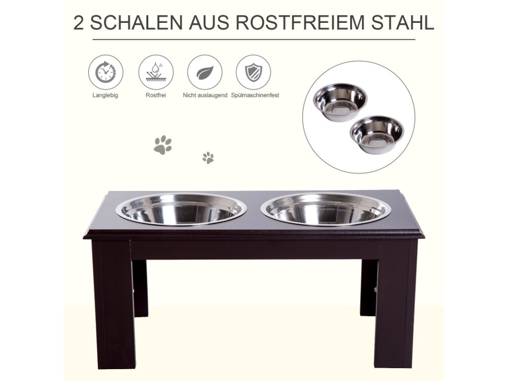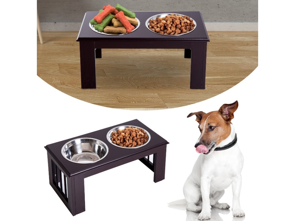 S touto miskou na jídlo můžete svým mazlíčkům usnadnit čas jídla. Konstrukce je z MDF desek navržená pro dlouholeté používání a dvě kulaté misky jsou z nerezové oceli. Obě misky jsou robustní, odolné a snadno se čistí. Jsou hygienické a bezpečné pro vaše domácí mazlíčky. Zvýšené dno pomáhá, aby bylo jídlo pro vaše domácí mazlíčky čistší a snazší. Misky na krmivo jsou nezbytnou výbavou každé domácnosti se psem, kočkou apod.