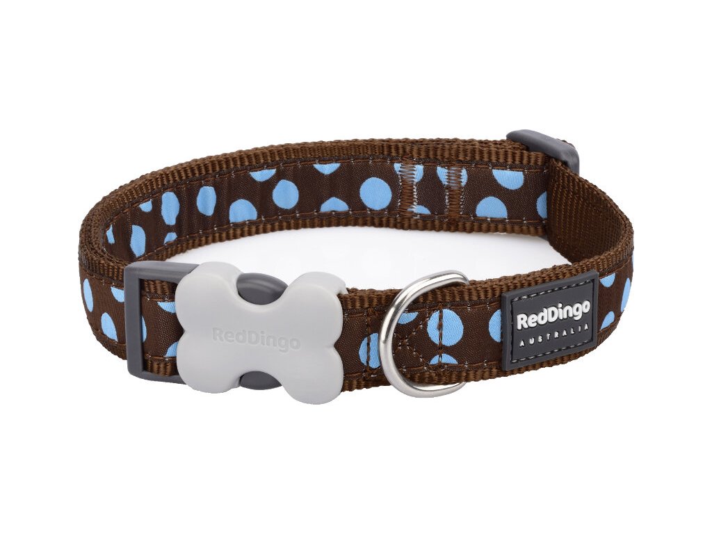 Red Dingo spojuje funkčnost, design a dlouhou životnost. Obojky jsou navrženy tak, aby vydržely každodenní dobrodružství vašeho psa – od městských procházek po lesní výpravy. Vzor modrých puntíků na hnědém obojku přináší design s hravým otiskem, který zaujme svou elegancí i přívětivostí na první pohled.