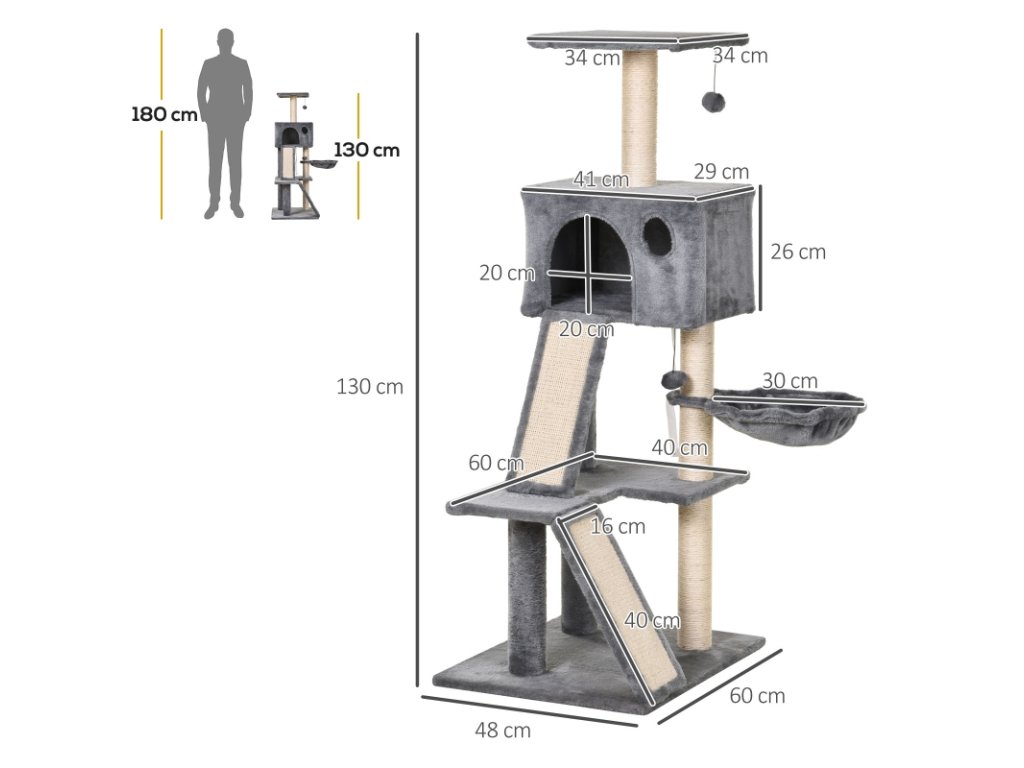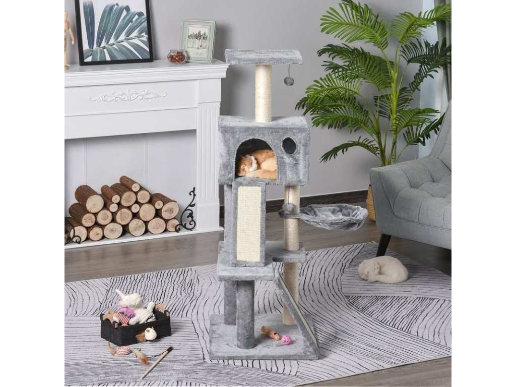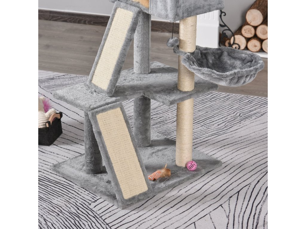 V životě koček hrají důležitou roli škrabadla. Nabízejí našim milým mazlíčkům nejen místo, ale také příležitost stimulovat jejich přirozené instinkty a zároveň zlepšovat jejich lovecké dovednosti. Tento kočičí strom je ideální k tomu, aby poskytl vašemu milému mazlíčkovi skvělé místo, kde může šplhat, skákat a spát. Jeho polstrovaný, odolný plyšový potah je pohodlný a pohodlný, aby vaše kočka mohla bezpečně pozorovat své území. Kočičí strom je dodáván s flexibilními rameny, které visí fuzzy míčky a stimulují lovecké dovednosti vaší kočky.