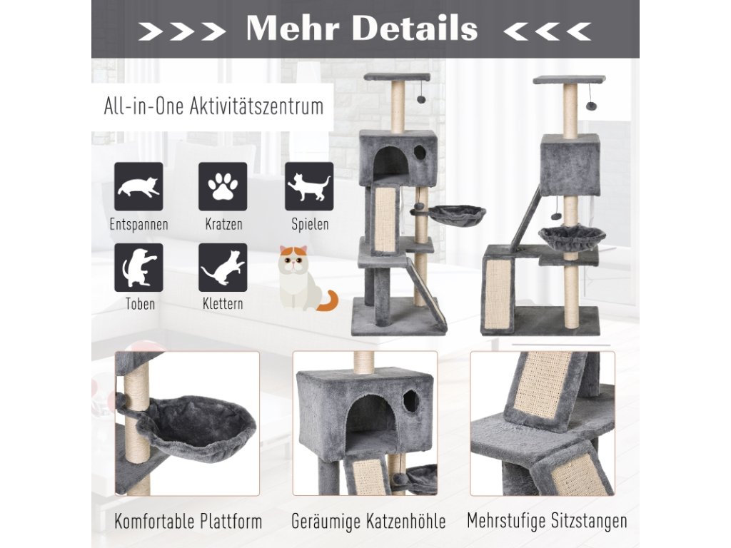 Prostor k relaxaci: Kobercové platformy poskytují prostor k relaxaci a hře. A po hře může váš mazlíček odpočívat ve stylové útulné jeskyni pro kočky