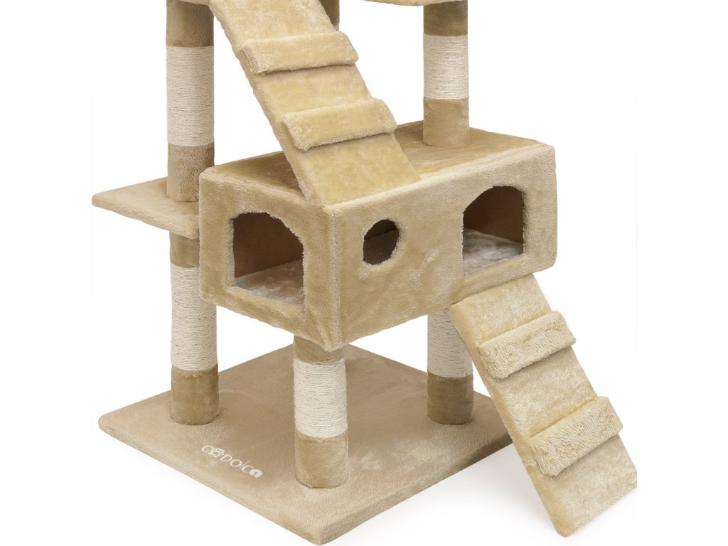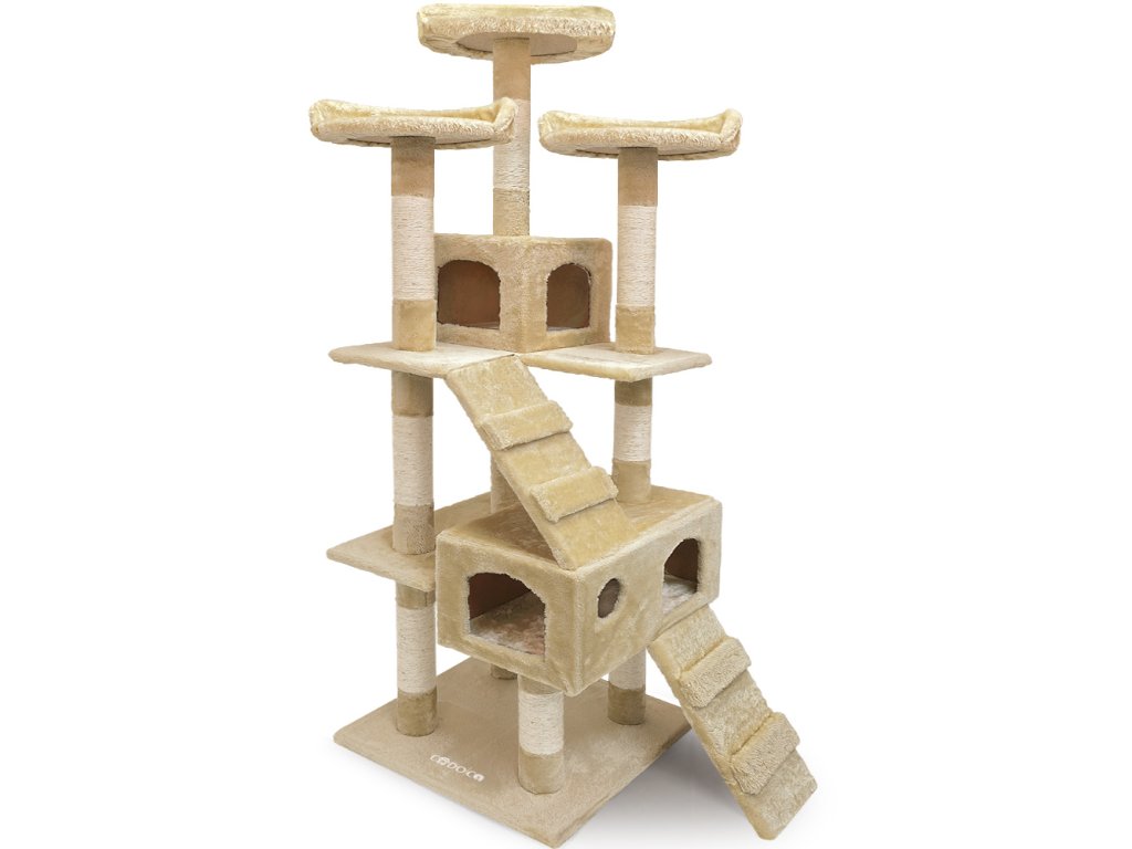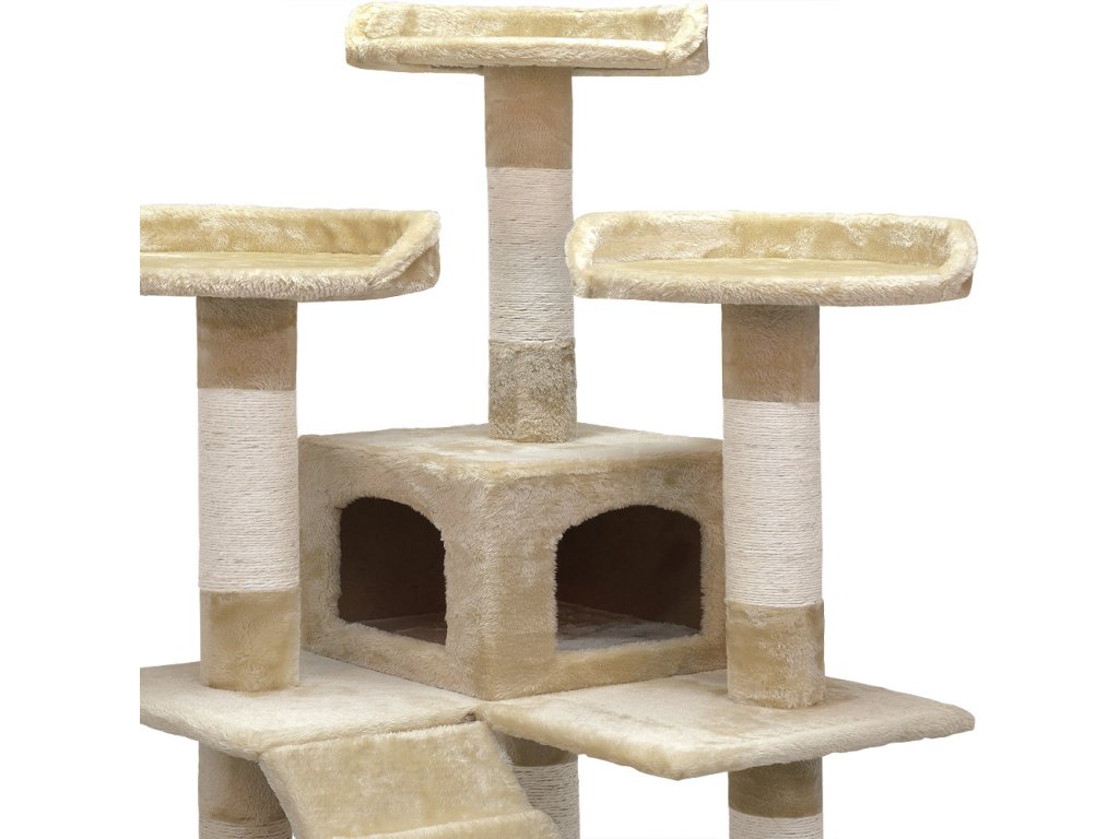 Odpočívadlo a škrabadlo pro kočky se 3 vyhlídkami, 2 domečky, béžové, výška 175 cm