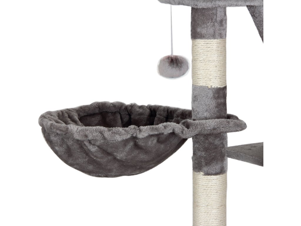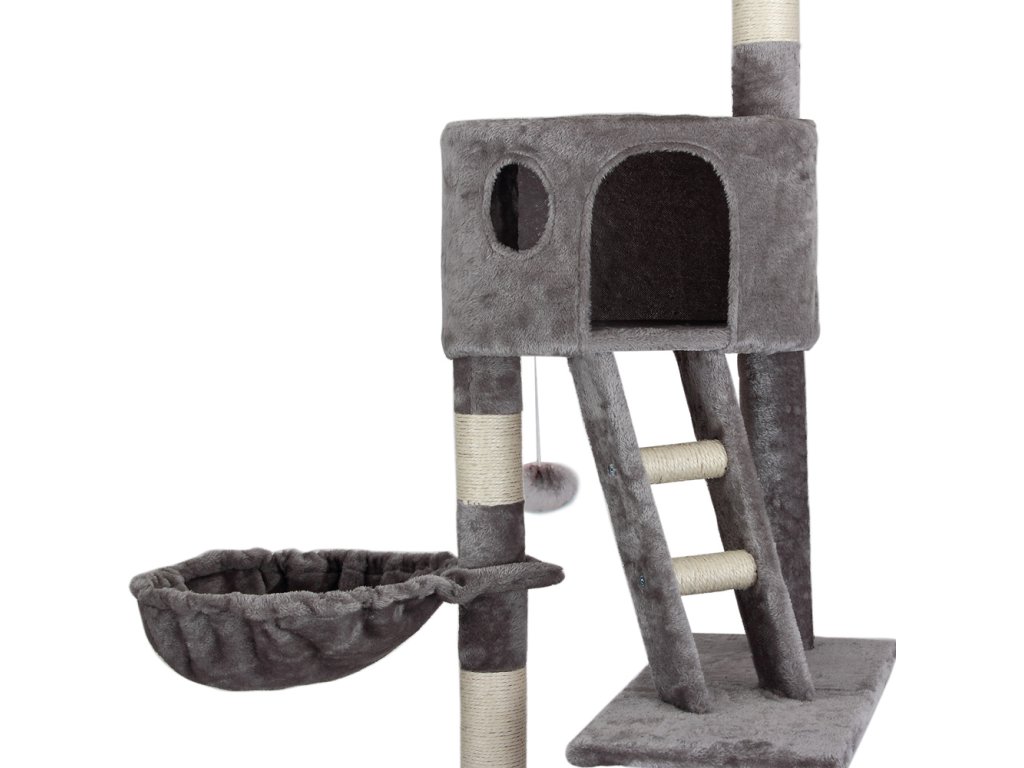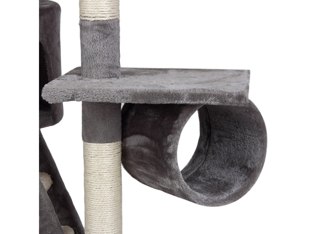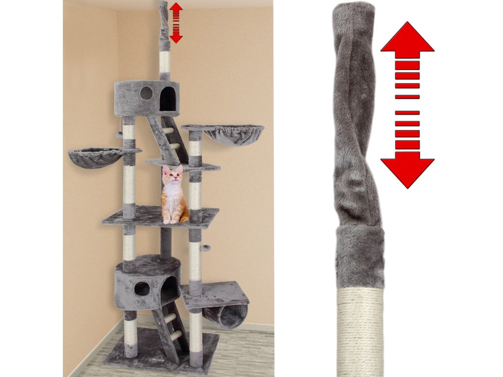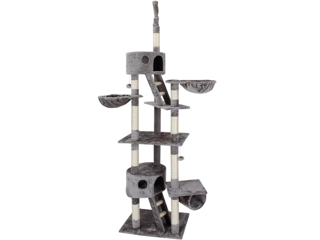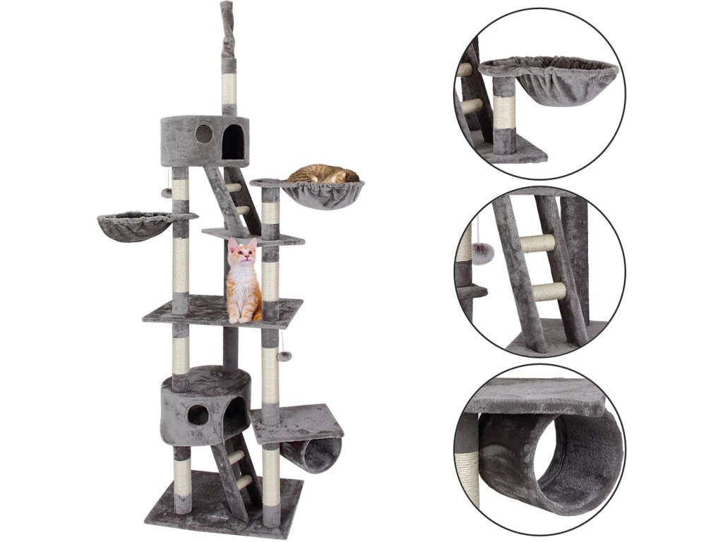 Odpočívadlo a škrabadlo pro kočky se 3 vyhlídkami, 2 domečky, tunelem, šedé, výška 240 - 260 cm
