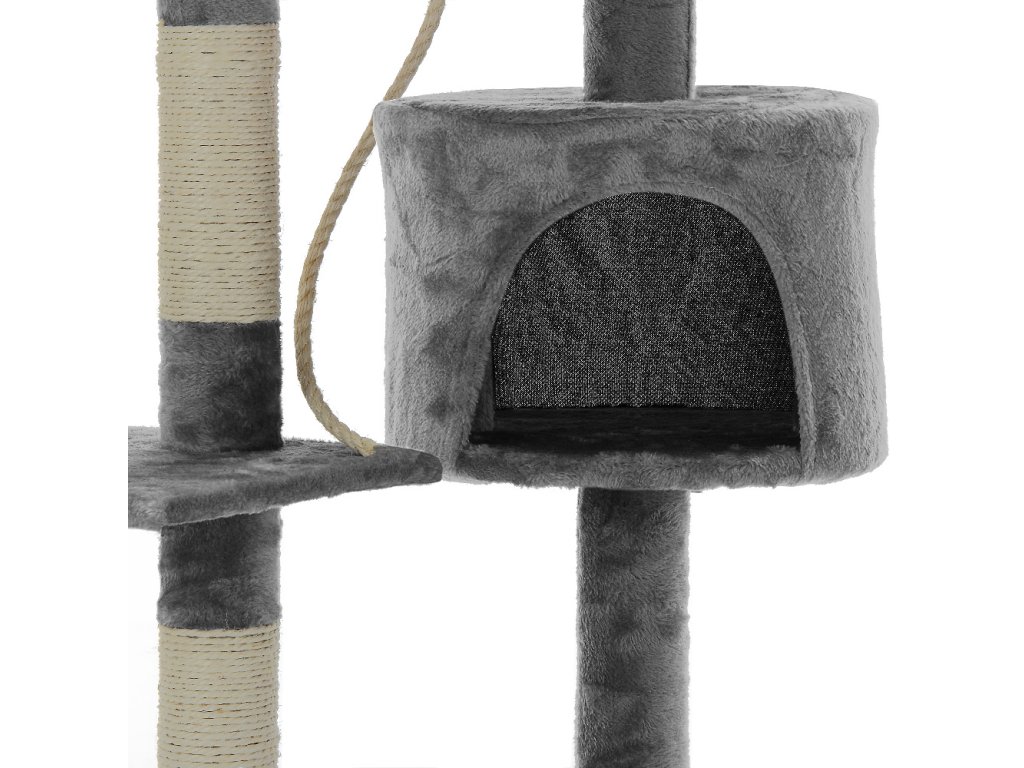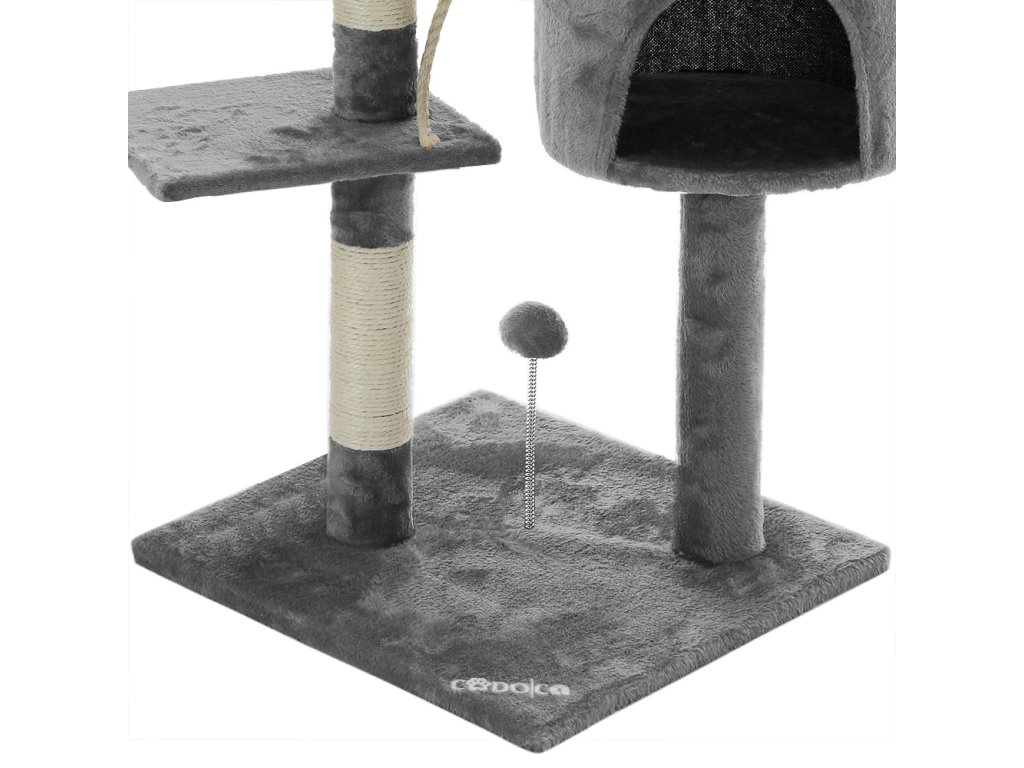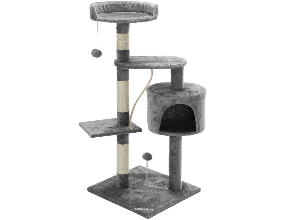 Odpočívadlo a škrabadlo pro kočky se 3 vyhlídkami, jeskyní, míčky a lanem, šedé, výška 112 cm