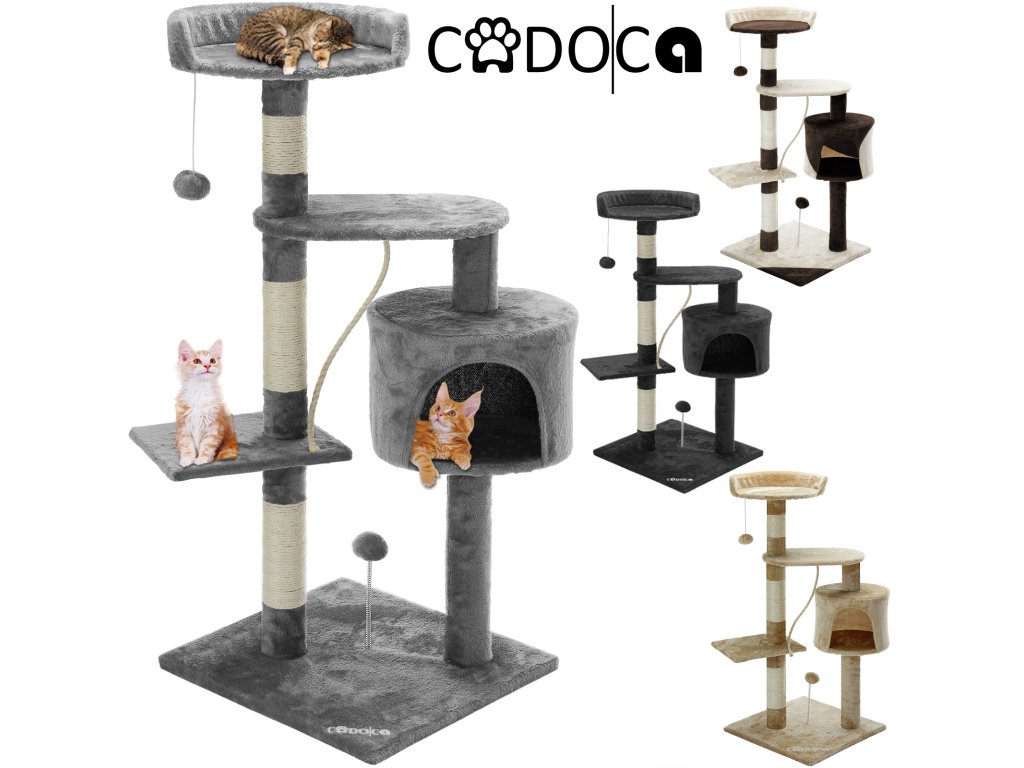 Kočičí škrabadlo na drápání, hraní, schovávání a podřimování! S úkrytem, hracími míčky, hracím lankem a plyšovou podšívkou má vaše kočka vše, co potřebuje, aby se cítila dobře. Sisalový obal na kmenech je robustní a ideální pro broušení drápků. Robustní základní deska zůstává stabilní i při divokých hrátkách.