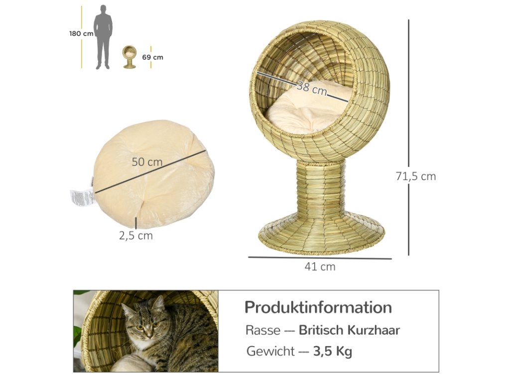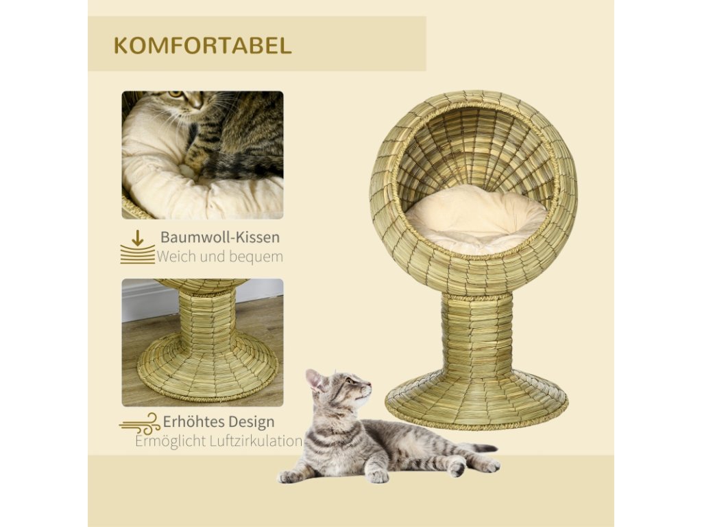 Pelíšek pro kočky z mořské trávy vč. polštáře, 41 x 41 x 71,5 cm