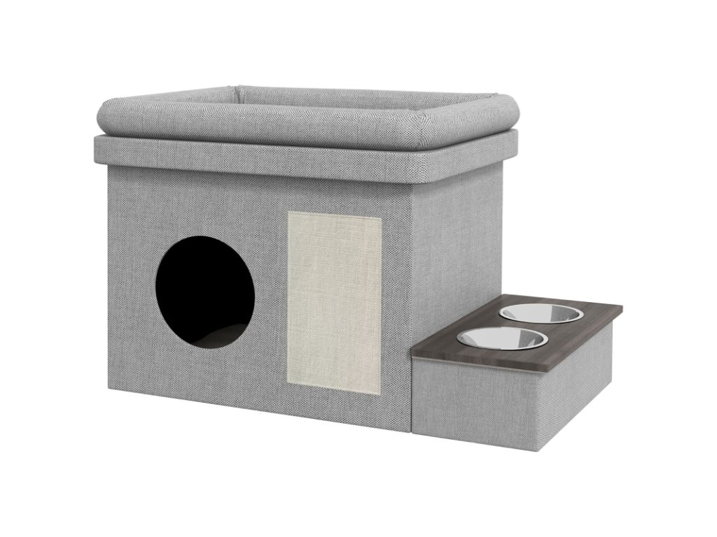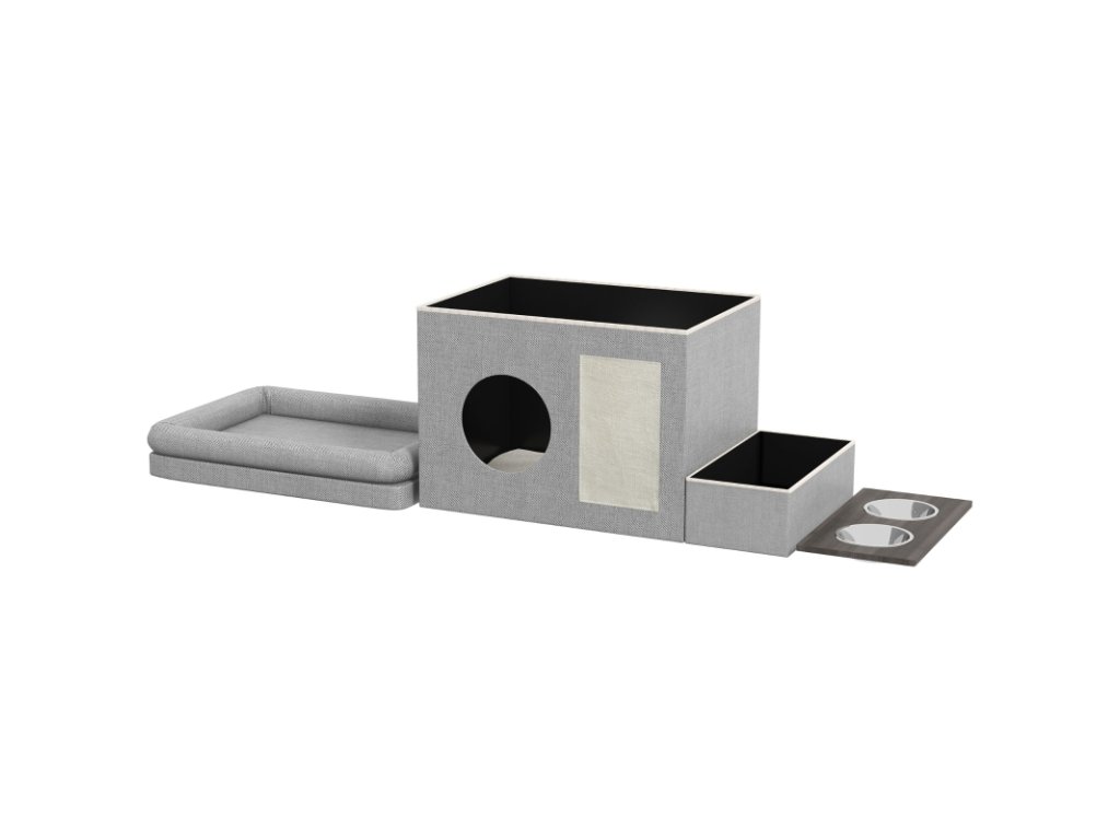 Pelíšek pro psy / kočky s miskami na krmení, šedý