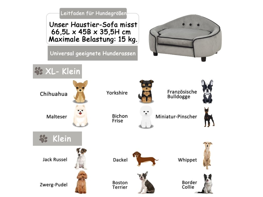 Pohovka pro psy, šedá (zvíře do 15 kg a 45 cm)
