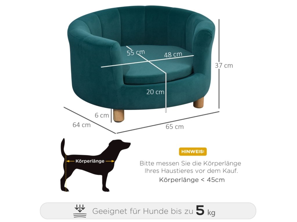 Pohovka pro psy / kočky s měkkým potahem, zelená (zvíře do 5 kg a 45 cm)