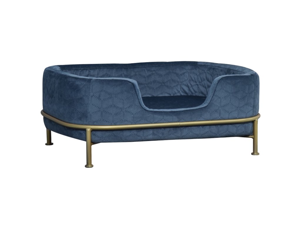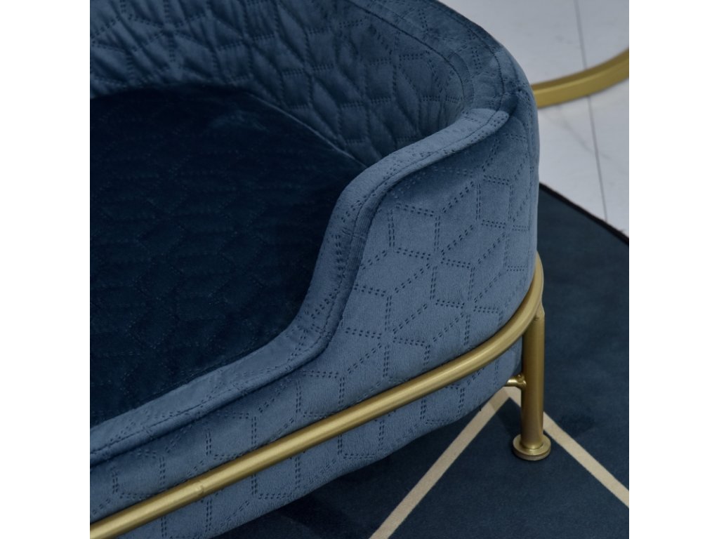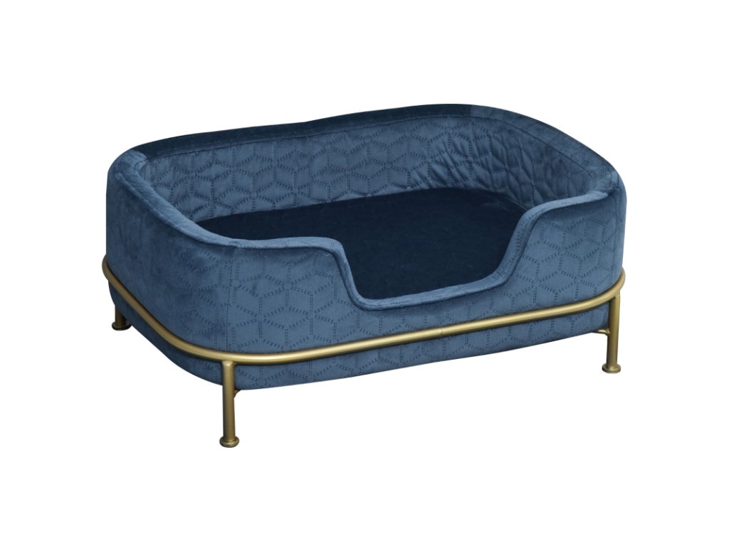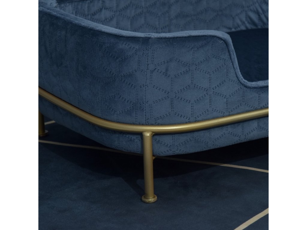 Pohovka pro psy s měkkým potahem, modrá/zlatá (pes do 8 kg a 50 cm)