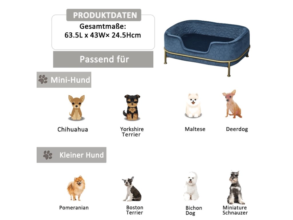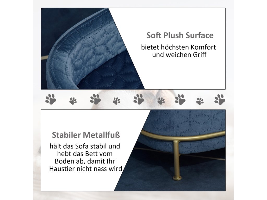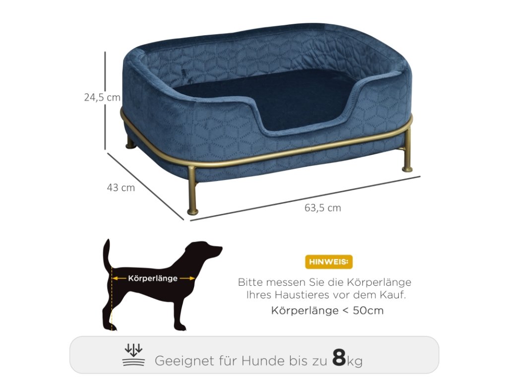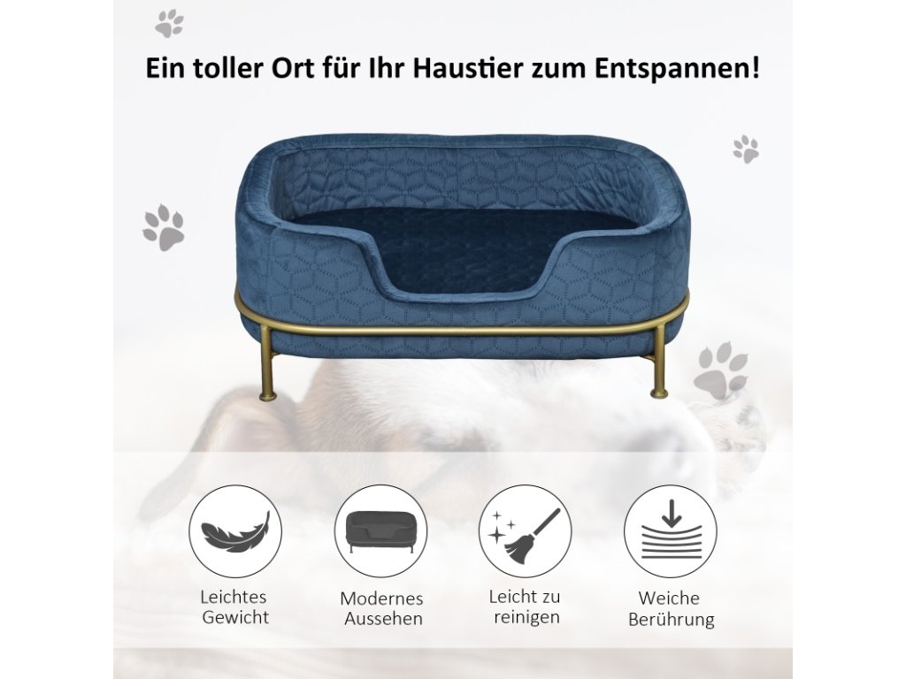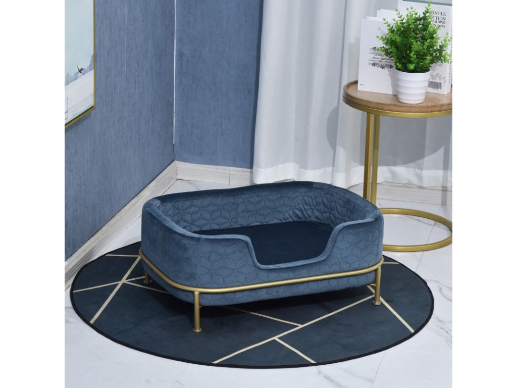 Pohovka pro psy s měkkým potahem, modrá/zlatá (pes do 8 kg a 50 cm)