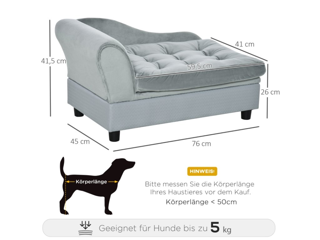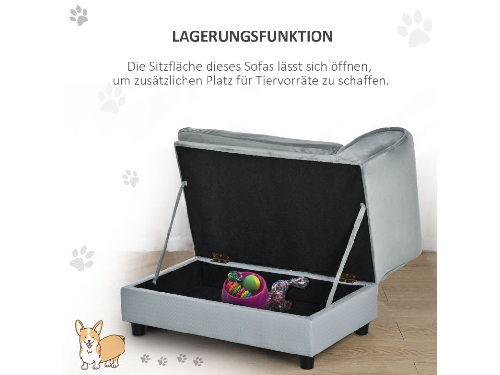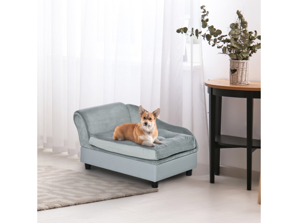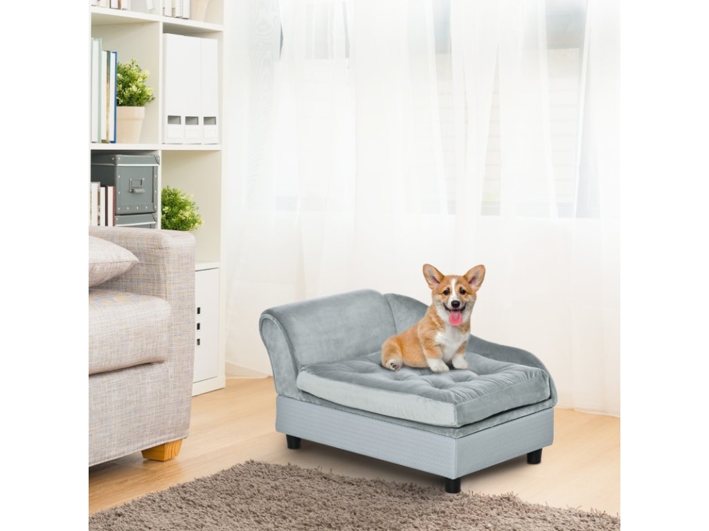 Pohovka pro psy s úložným prostorem, světle šedá (pes do 5 kg a 50 cm)