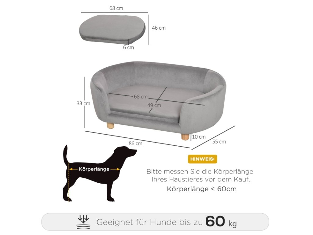 Pohovka pro psy šedá (pes do 60 kg a 60 cm)
