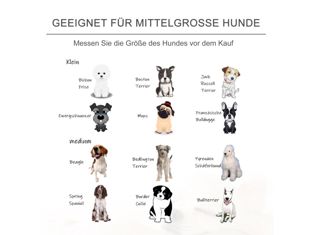 - Vhodné pro psy s délkou těla menší než 60 cm a hmotností do 60 kg