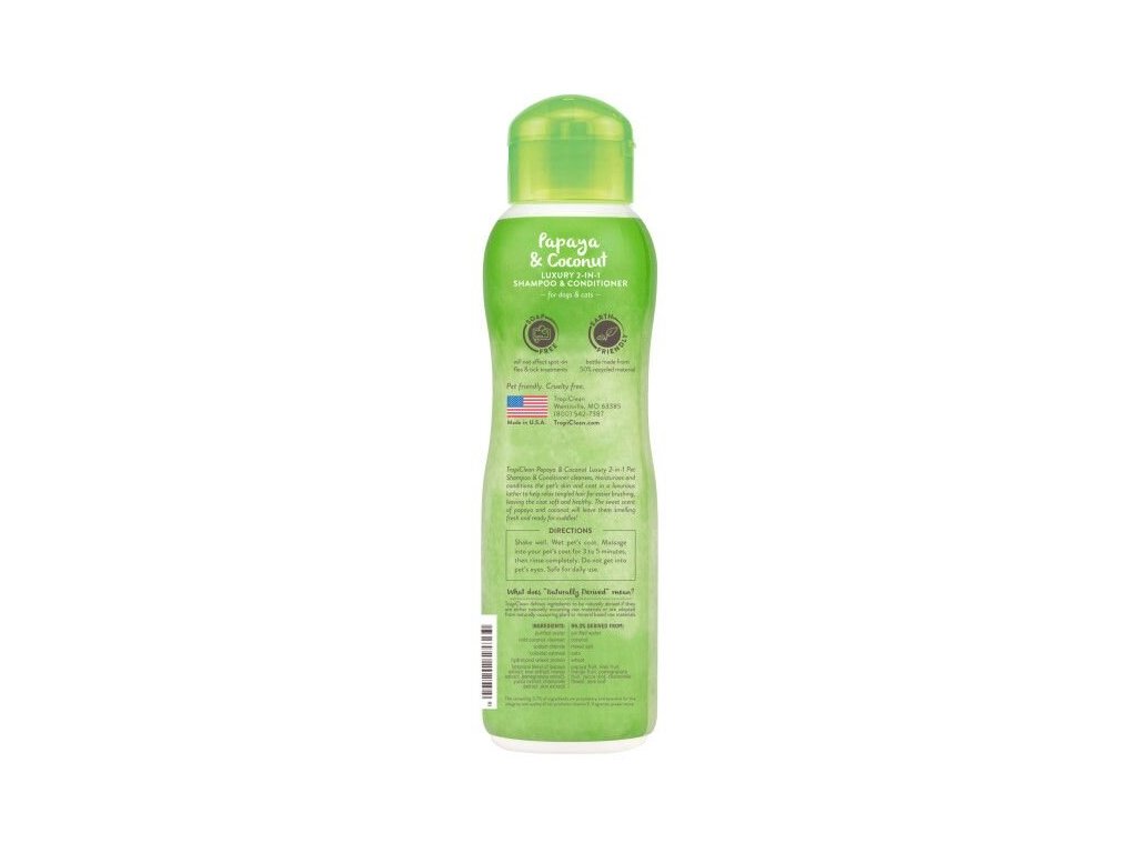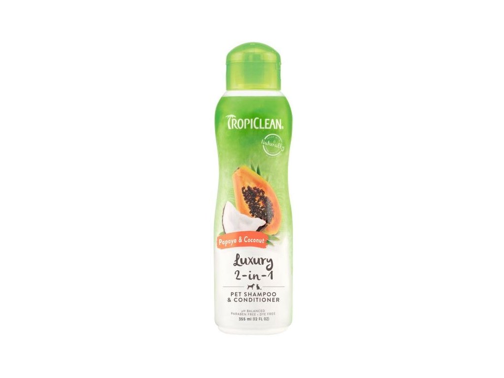 Dopřejte svému mazlíčkovi luxusní péči s přírodním šamponem Luxury 2v1 – s kondicionérem. Tento šampon je ideální pro suchou pokožku a srst, kterou jemně čistí a zároveň hydratuje. Kombinace papáji, kokosu a kiwi zajišťuje snadné rozčesávání, lesk a zdravý vzhled srsti. Vhodný pro všechna plemena psů i koček.