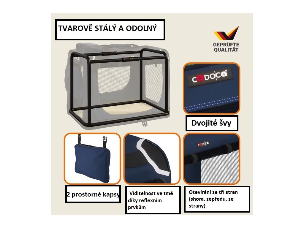 Materiálová tkanina 600D Oxford je odolná a snadno se čistí. Deka se suchým zipem je snímatelná a lze ji prát na 30°C. Díky kvalitnímu materiálu a dobrému zpracování se z boxu budete dlouho těšit vy i váš blízký.
