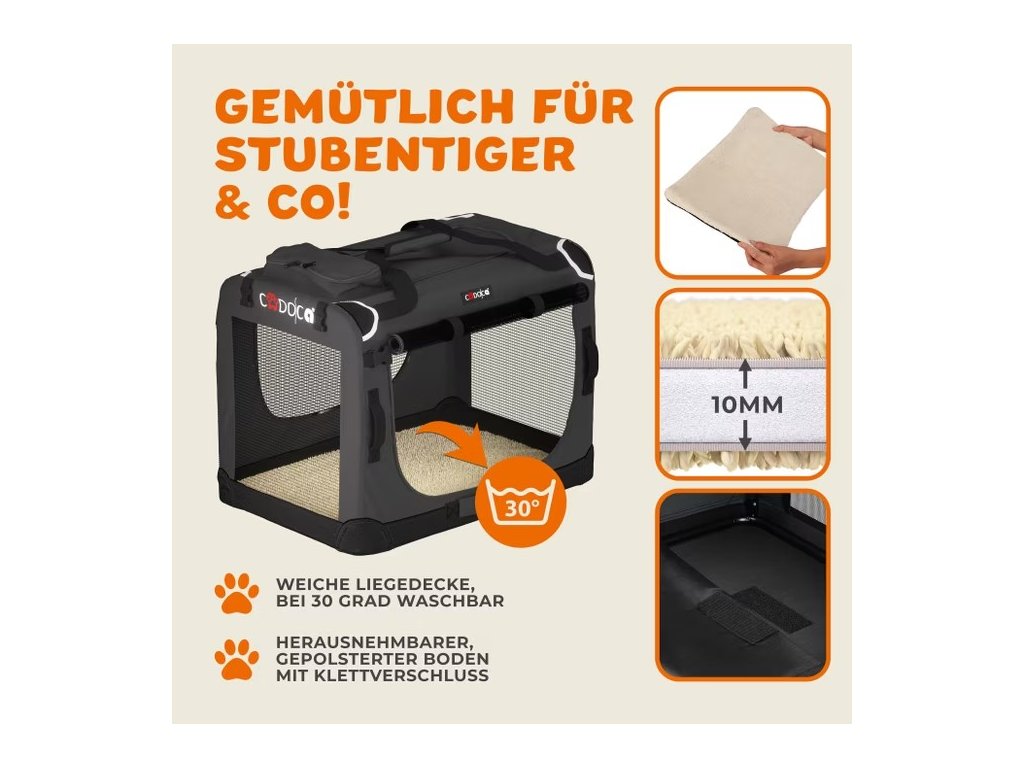 Udělejte radost svému psovi boxem pro psy od CADOCA®. V závislosti na velikosti je skládací přepravní box ideální pro malé až velké psy. Díky plyšové měkké polstrované dece nabízí box pohodlné a útulné místo pro vašeho čtyřnohého přítele. Box je vhodný i pro vaši kočku jako místo na spaní a úkryt.