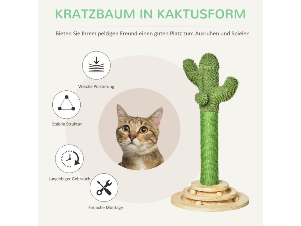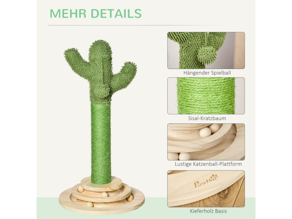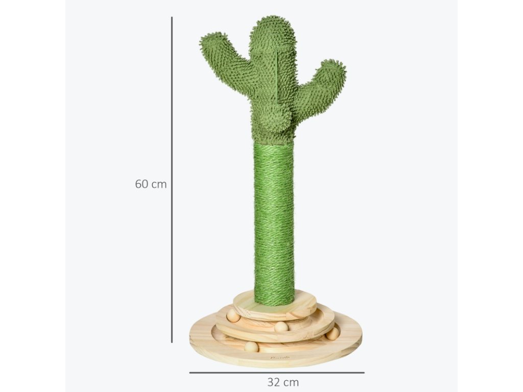 Škrabadlo pro kočky, vzhled kaktus, zelené, 60 cm
