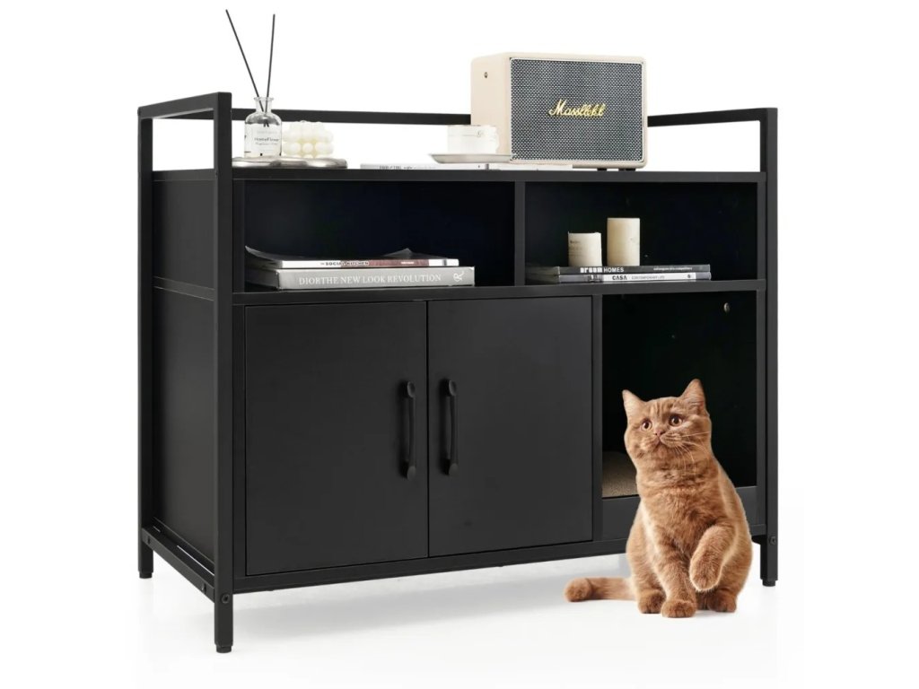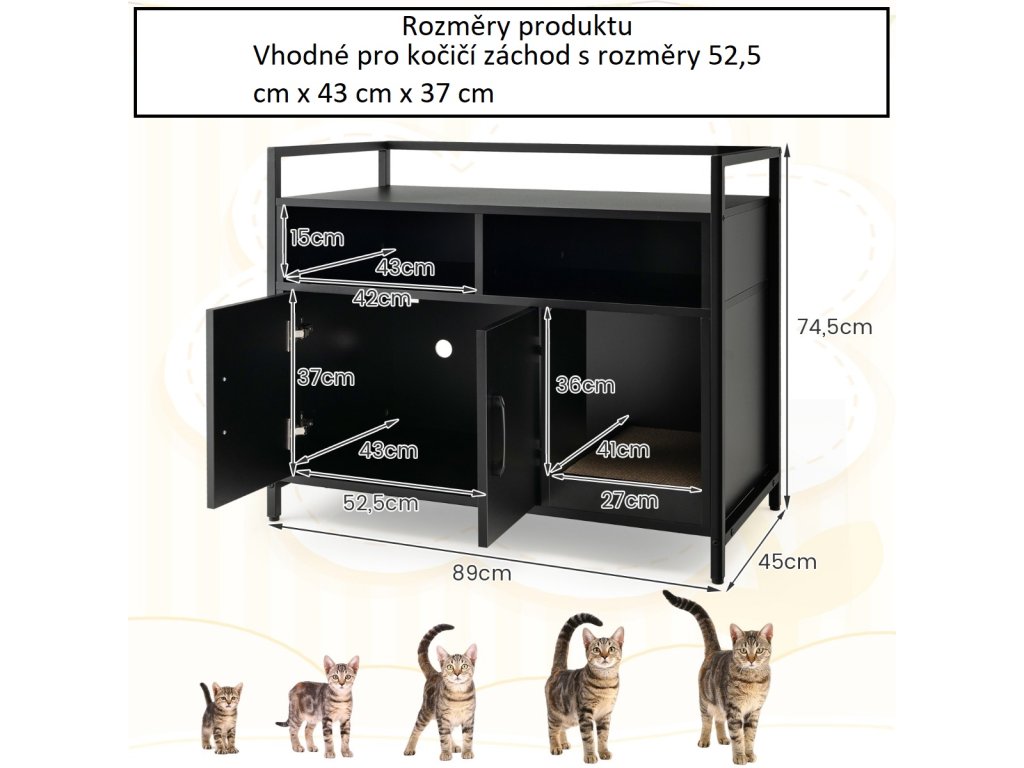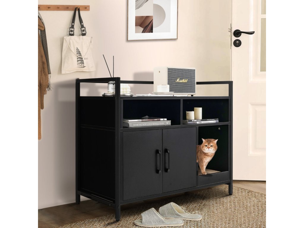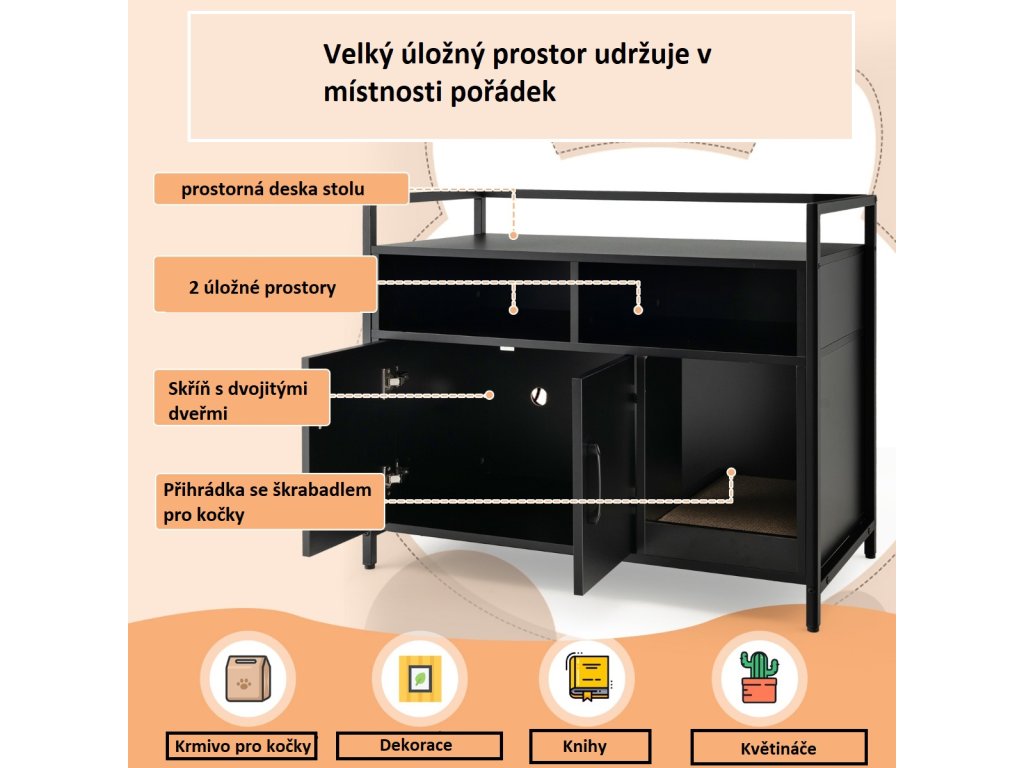 - Lze ji použít jako skříňku na kočičí stelivo nebo jako úložnou skříňku