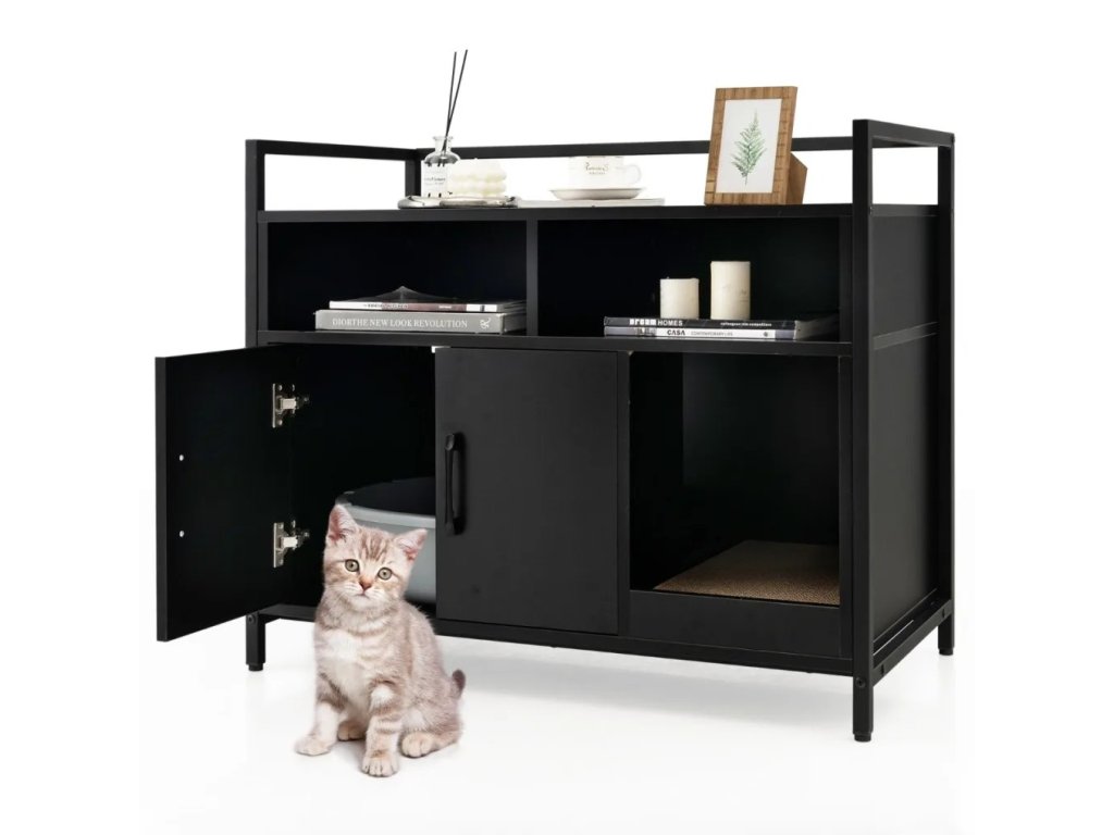 Skříňka na kočičí toaletu s dvířky, černá