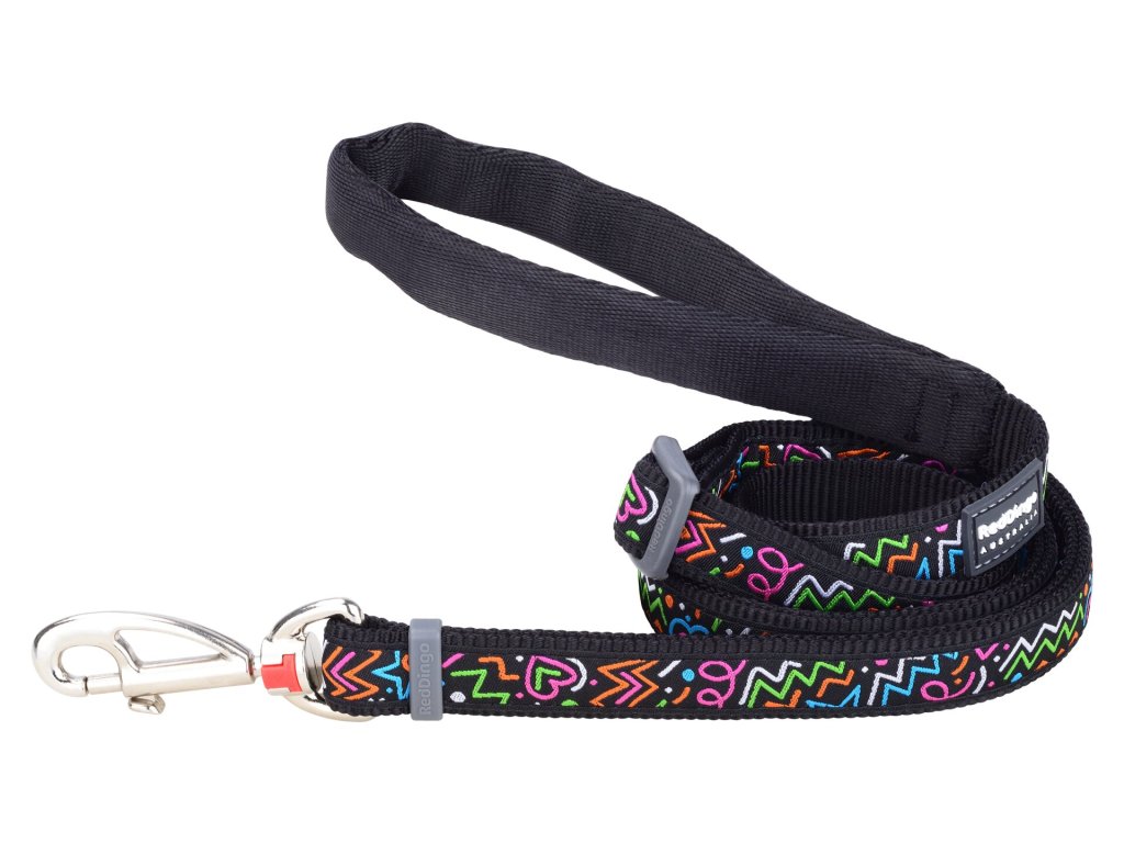 Klasické vodítko Red Dingo s nastavitelnou délkou 1,0–1,8 m je ideální volbou pro každodenní venčení. Design abstraktního vzoru na černém podkladě kombinuje styl s funkčností, zatímco šířka popruhu 25 mm zajišťuje pevnost i pro větší plemena.