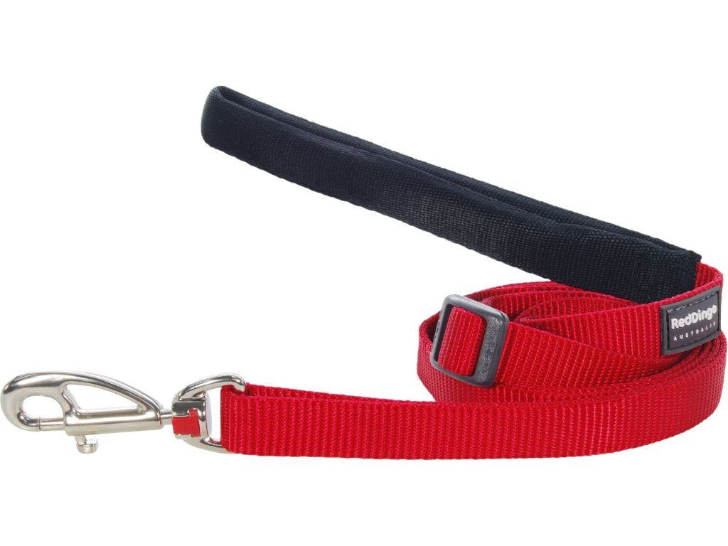 Klasické vodítko Red Dingo v elegantní červené barvě je ideální pro každodenní procházky. Díky nastavitelné délce 1,0–1,8 m se přizpůsobí různým situacím – od volného venčení po krátké vedení psa u nohy. Šířka popruhu 12 / 15 / 20 a 25 mm zajišťuje pevnost i pro velká plemena.