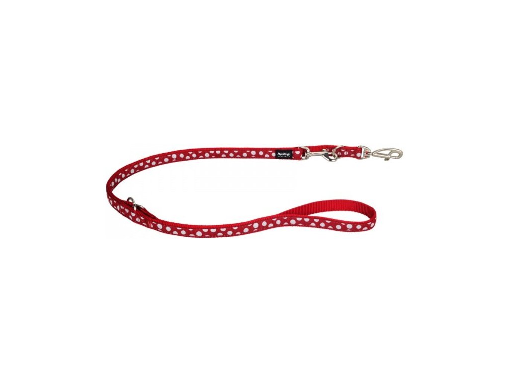 Vodítko Red Dingo s motivem bílých puntíků na červeném podkladu je ideální volbou pro majitele psů, kteří hledají kombinaci kvality, praktičnosti a designu. Díky přepínací konstrukci s dvěma karabinami lze snadno upravit délku vodítka podle aktuální potřeby – od krátkého vedení po volnější pohyb.