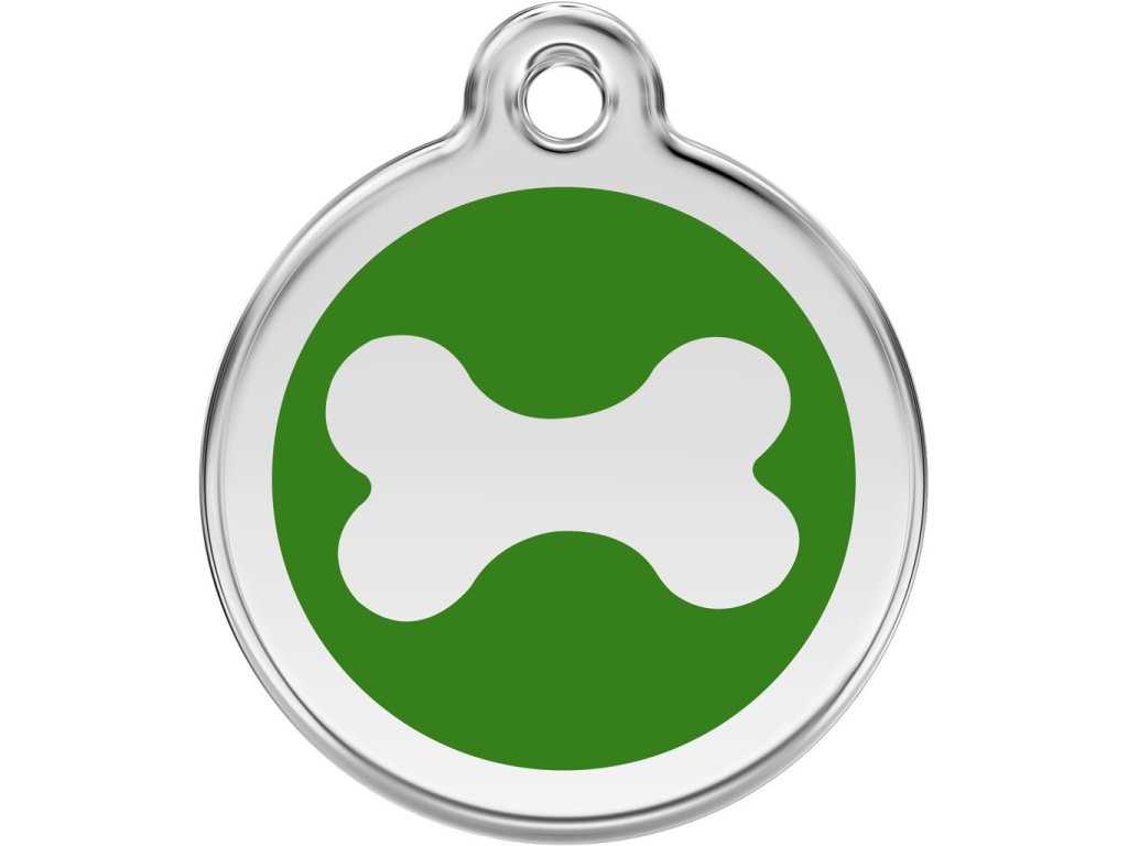 - Smaltovaný motiv zelené kosti – hravý a výrazný design pro každého mazlíčka